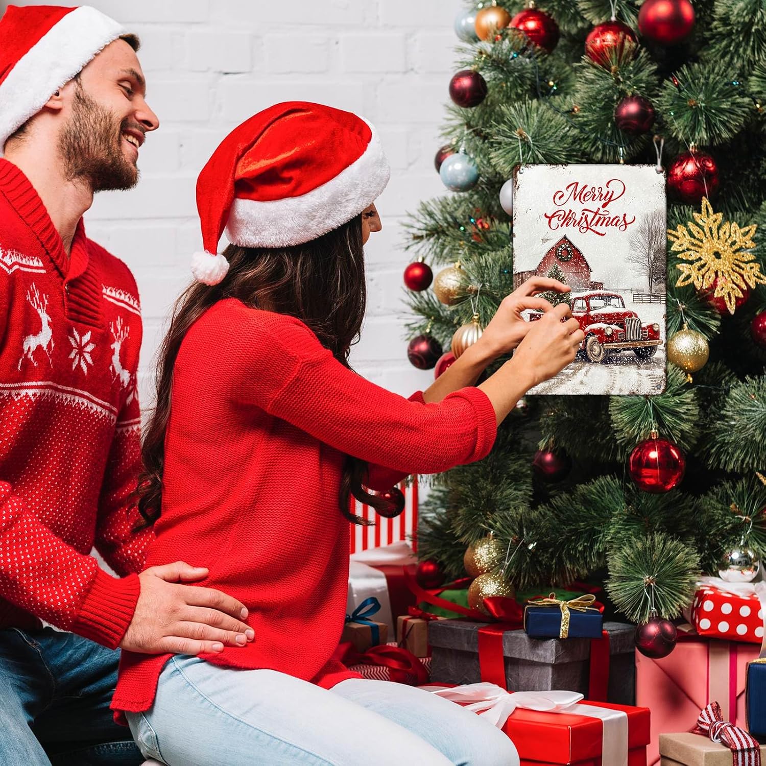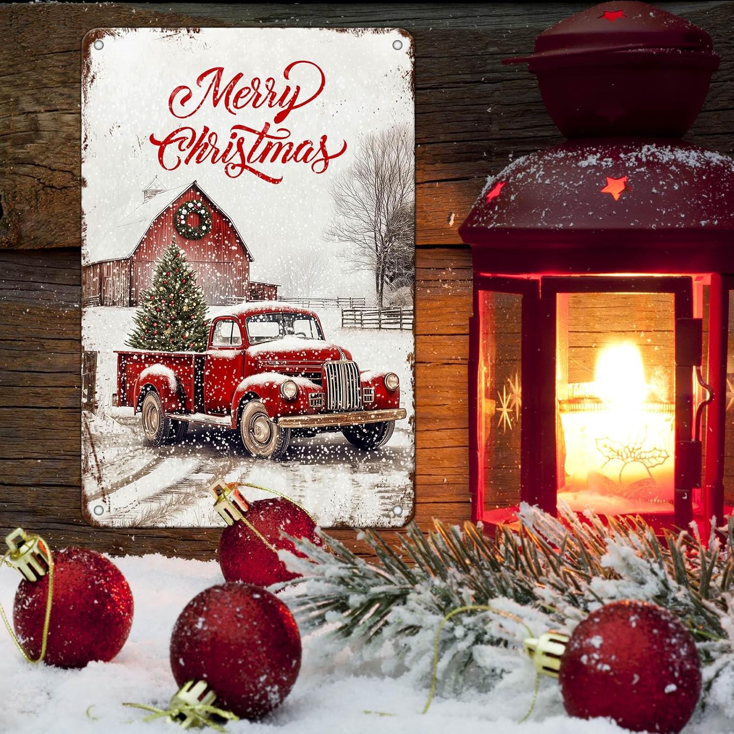 • HD Durable Merry Christmas Sign : This Christmas Red Truck Tin Sign Is Beautiful And Durable, Printed With High-Definition Uv Fade-Resistant Ink Technology, Giving It Vibrant Colors and Clear Details. It Is Easy To Clean and Maintain, Colors That Won'T Fade Over Time.