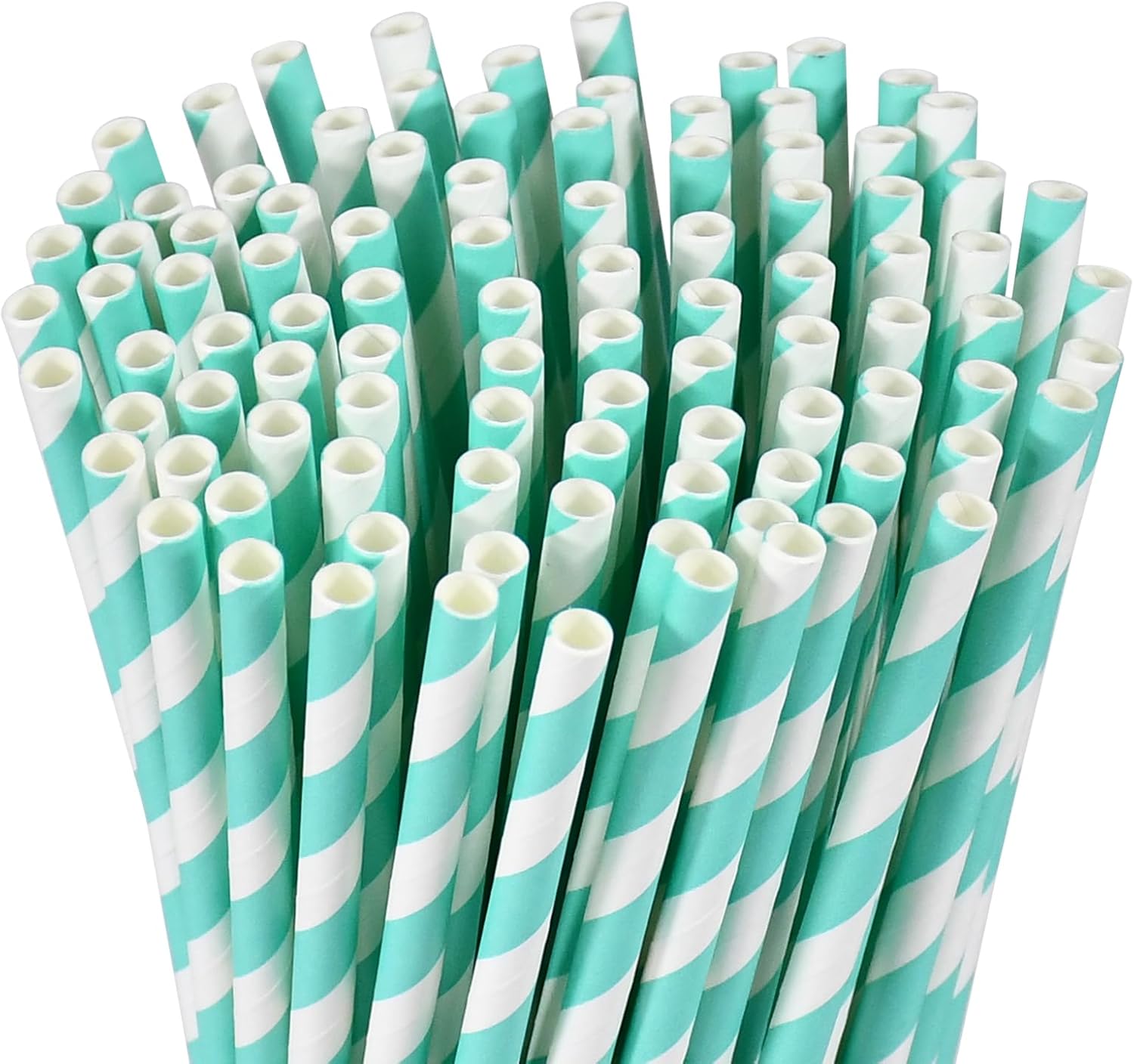 Light Blue 7.75 inch Disposable Paper Straws for Drinking, 100 Counts, Eco-friendly - for Baby Shower, Party, Decoration, Paper Crafts Sticks