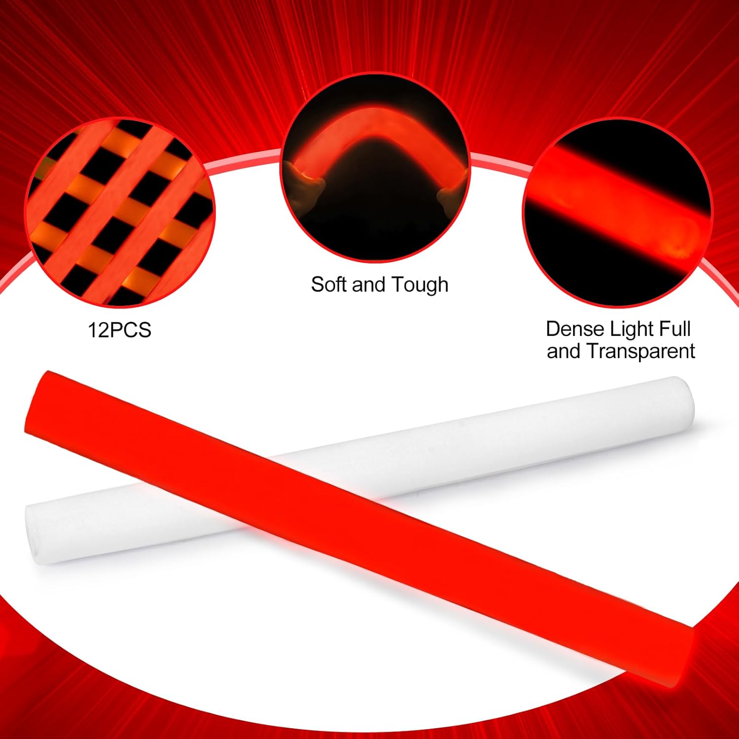 • Glow In the Dark Giant Foam Sticks: You will get 24 pack red light up foam glow sticks. Press the power button to switch between the 3 different light up modes: quick flashing, slow flashing and alternately flashing. These LED foam sticks boast vibrant colors, offering wider light coverage and ensuring the excitement party experience,bring tons of joy for you and your families. Perfect for theme music festivals, birthday, camping, clubs, shows, goodie bag or stocking stuffer and more