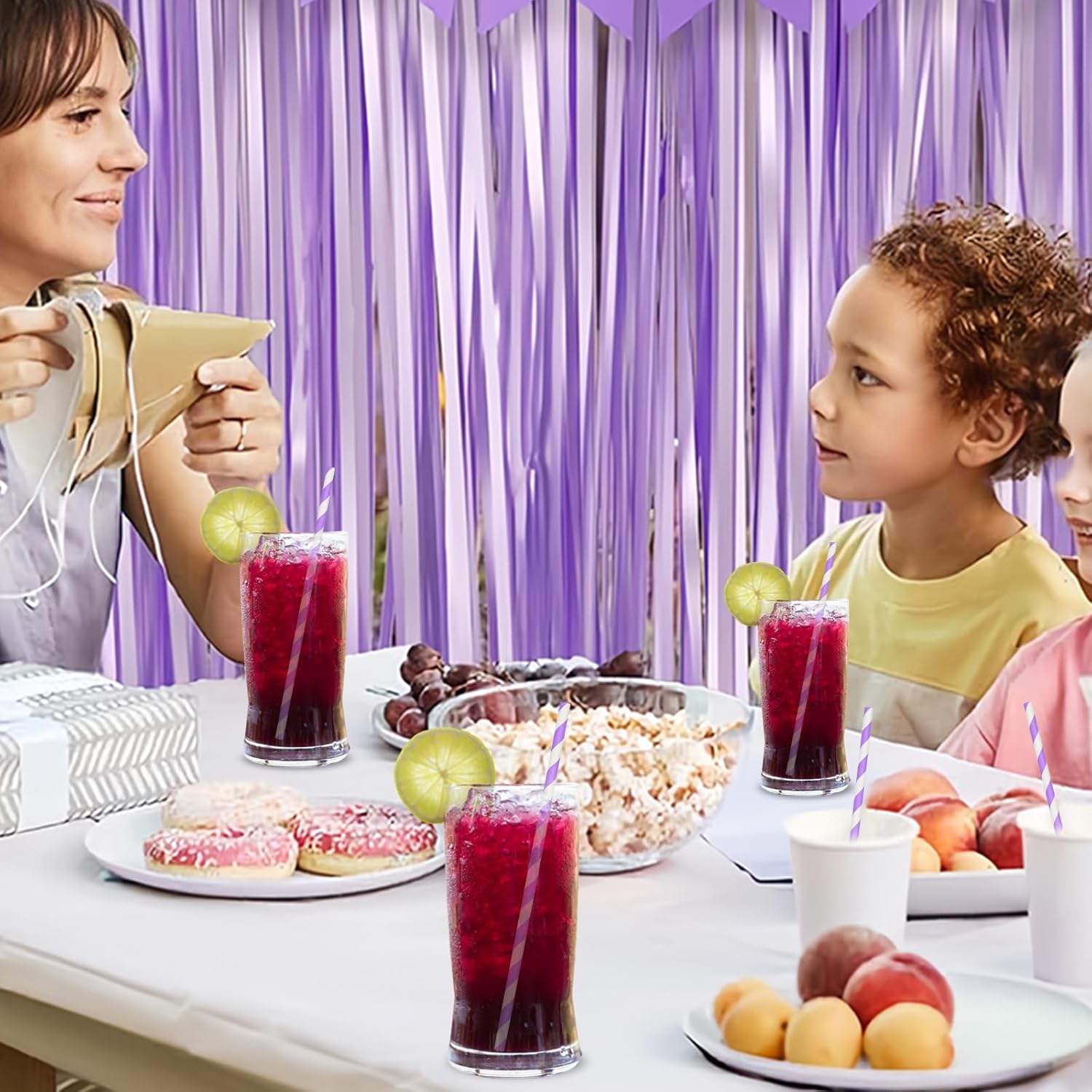 • 【Purple Stripes Design】Add a classic touch to your drinks with our violet purple and white striped spiral paper drinking straws, perfect addition to daily drinks, girls' parties, brithdays, unicorn parties