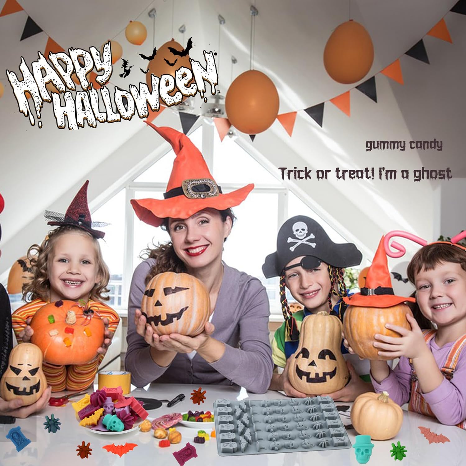 • 【Halloween Design】- The Heritage Gummy Mold Pan Is Designed With A Pumpkin Ghost Wizard Hat Bat Spider Tombstone Skull Halloween, Adding An Elegant Touch To Your Baked Goods. SIlicone Mold Non Stick Ensures Your Candy Come Out With The Halloween Day Design Intact, Making Them Look As Good As They Taste.