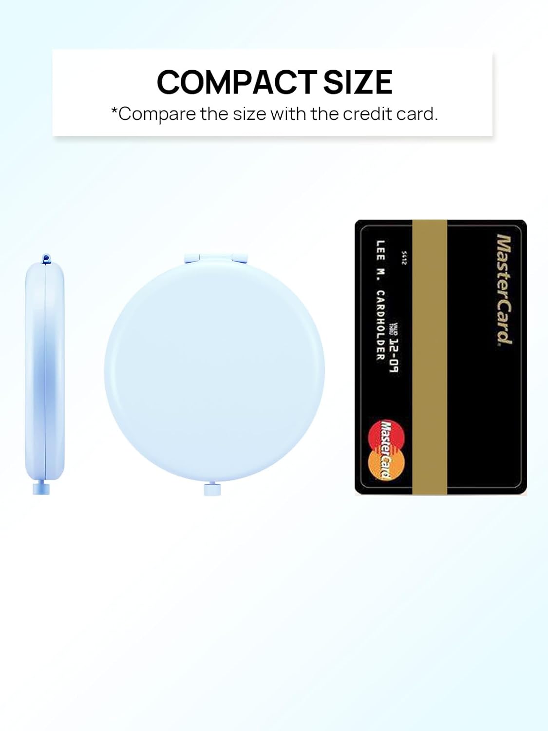 Compact Mirror for Purse, Double-Sided 1X/2X Magnifying Metal Pocket Makeup Mirrors(Round, Light Blue)