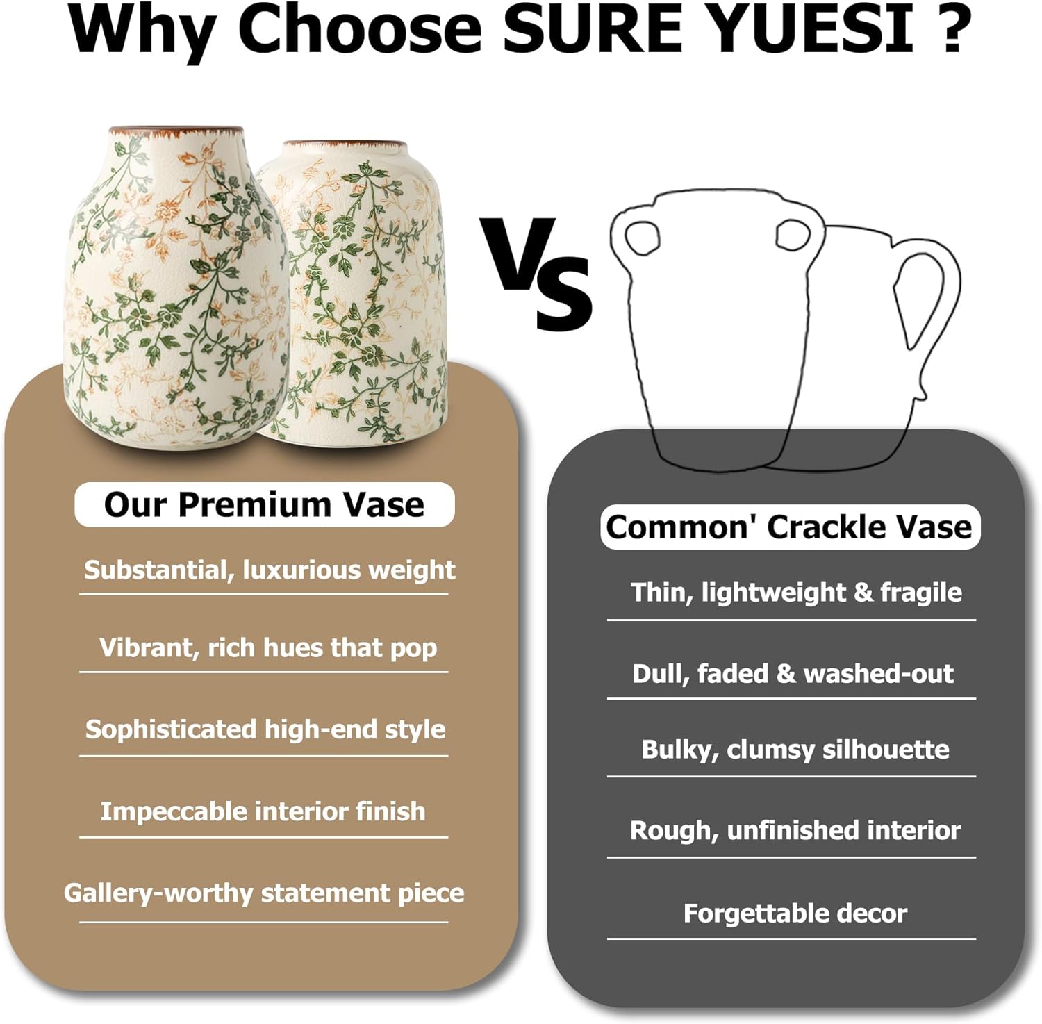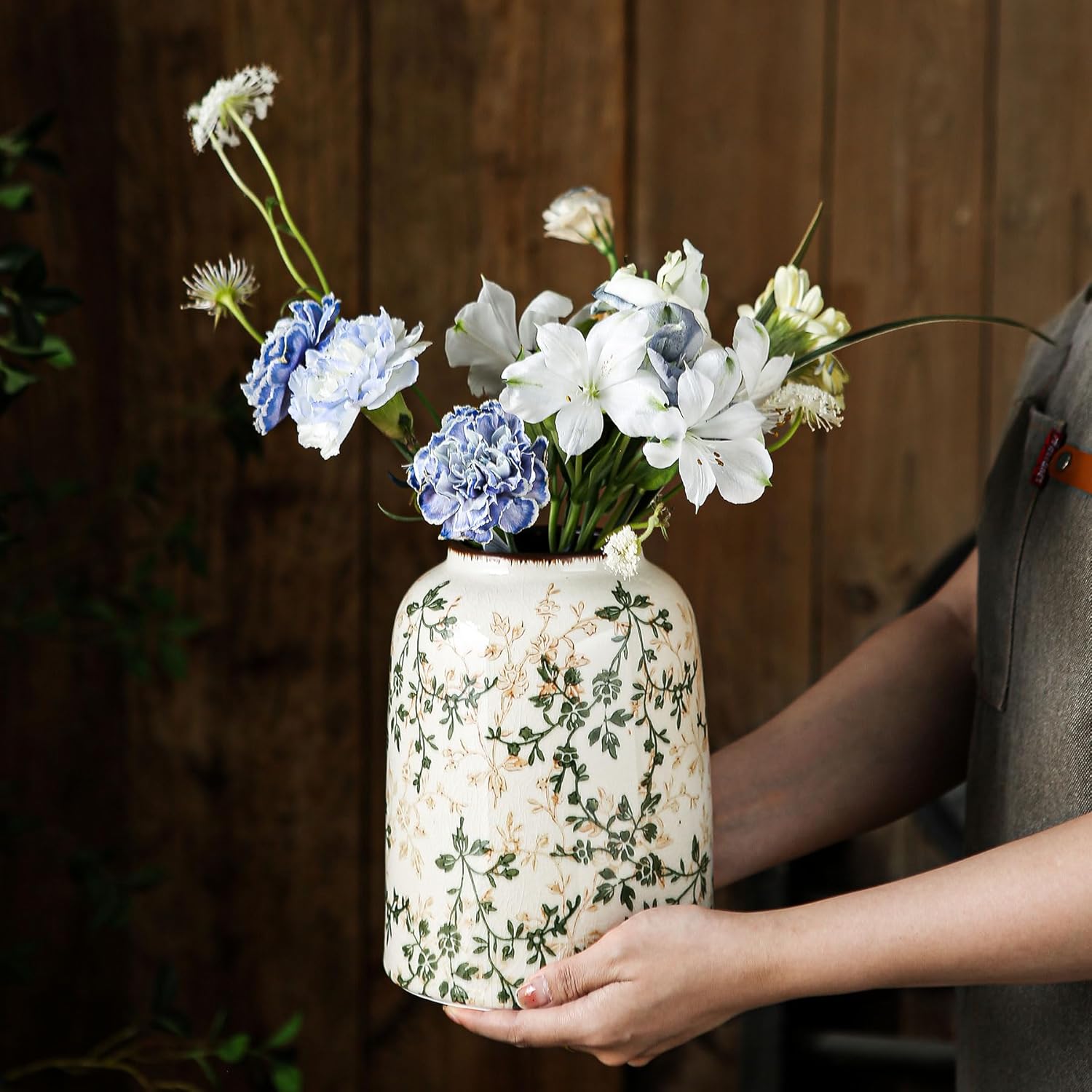• HIGH QUALITY CRAFTSMANSHIP: Expertly crafted from fine ceramic, this floral vase is built for durability and long-lasting beauty. Its heirloom quality look and feel make it a distinguished addition to your ceramic vases for home decor collection.