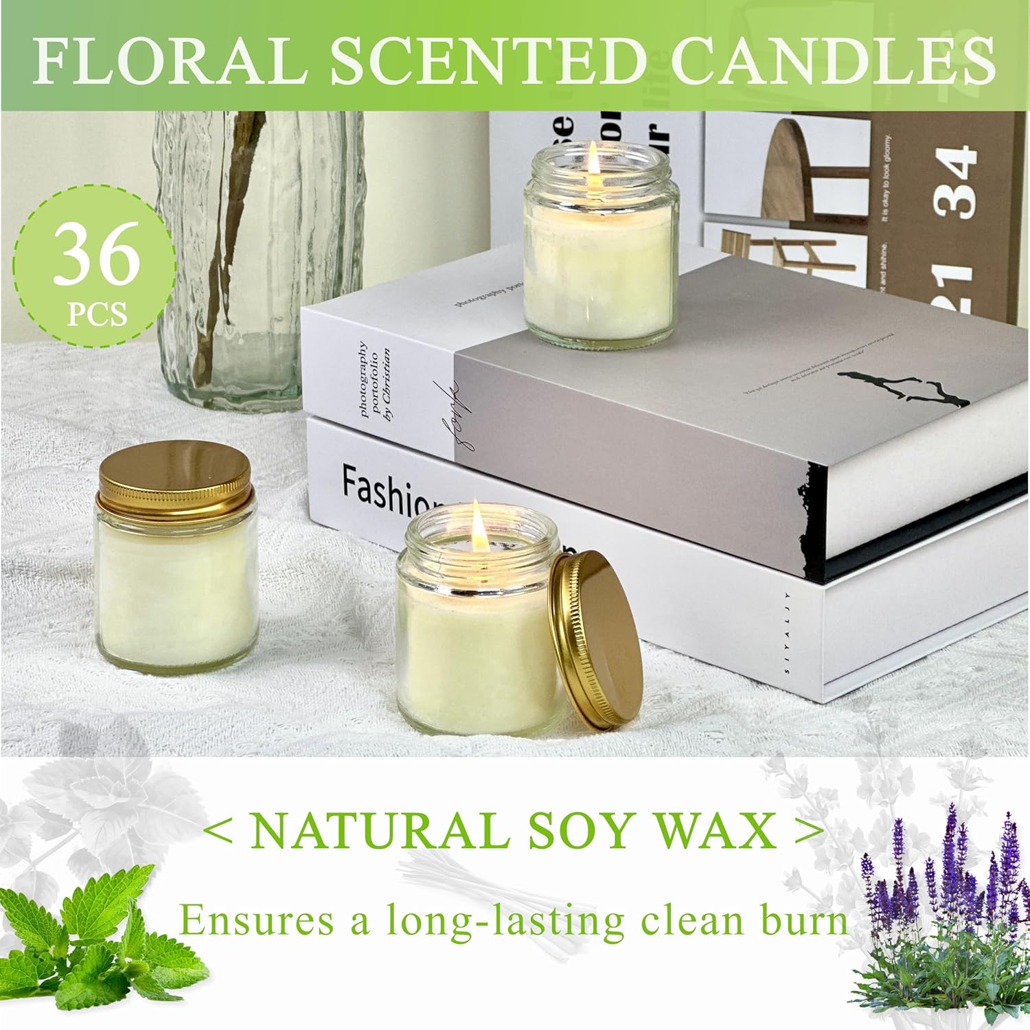 ACITHGL 36 Pcs 4oz Mini Mason Jar Candles Small Scented Candles Bulk Aromatherapy Ideal Souvenir Favors for Wedding Birthday Party (Sage, Mint, Citronella, Gold)