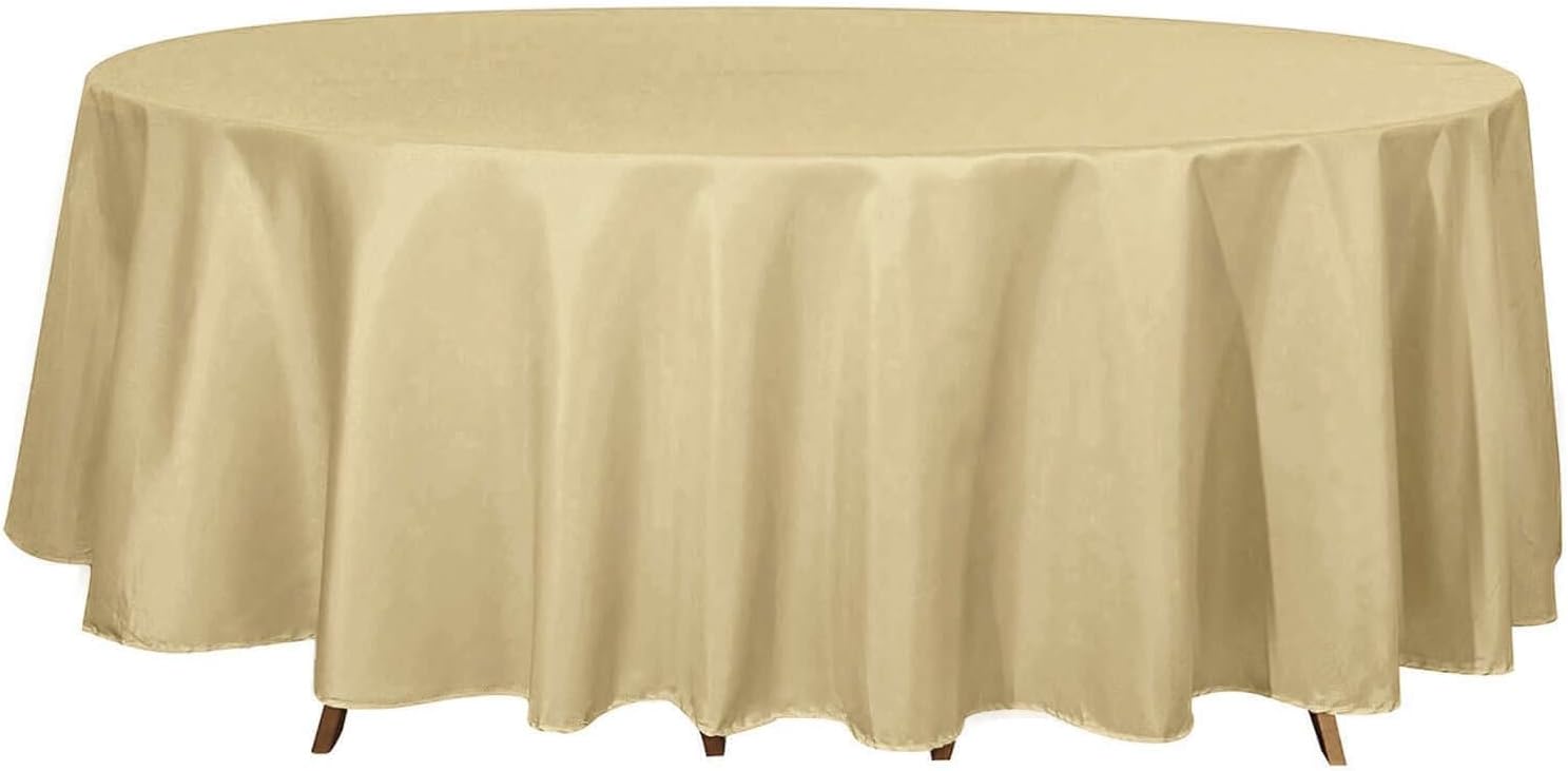 Efavormart Round Tablecloth, 108 Inch Stain & Wrinkle Resistant Washable Table Cloth, Decorative Polyester Fabric Table Cover for Banquet, Wedding, Dining- Champagne