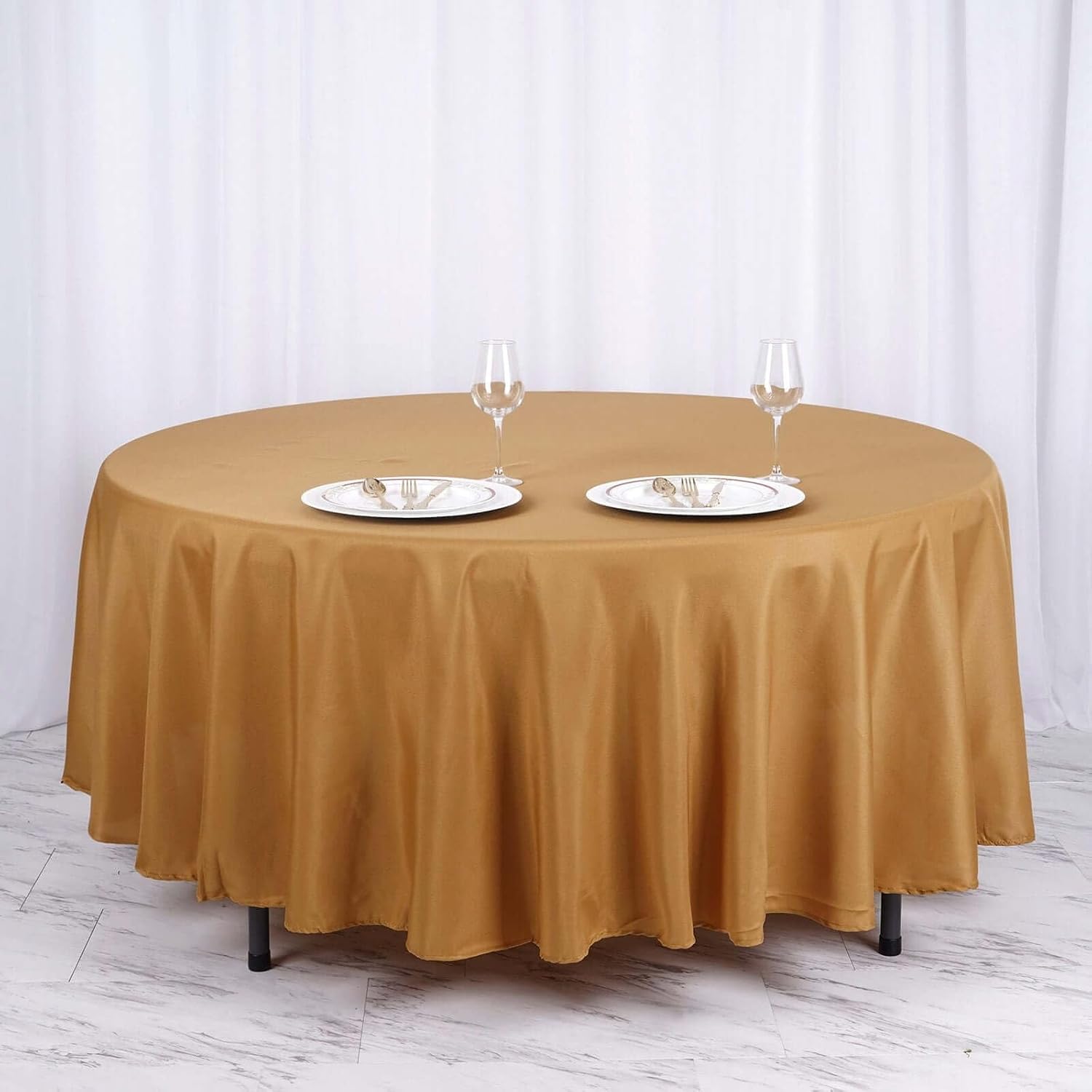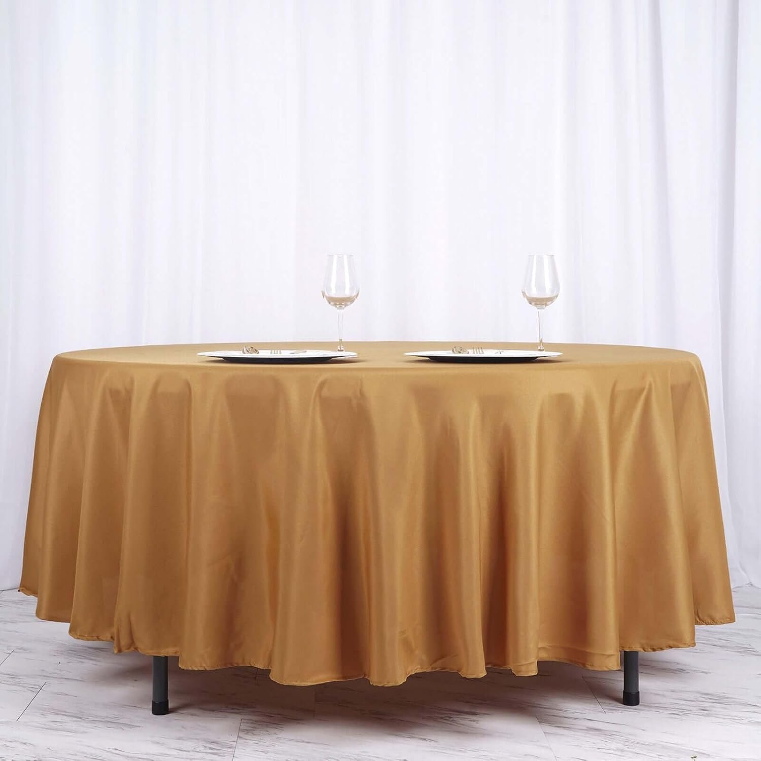 Efavormart Round Tablecloth, 108 Inch Stain & Wrinkle Resistant Washable Table Cloth, Decorative Polyester Fabric Table Cover for Banquet, Wedding, Dining- Gold