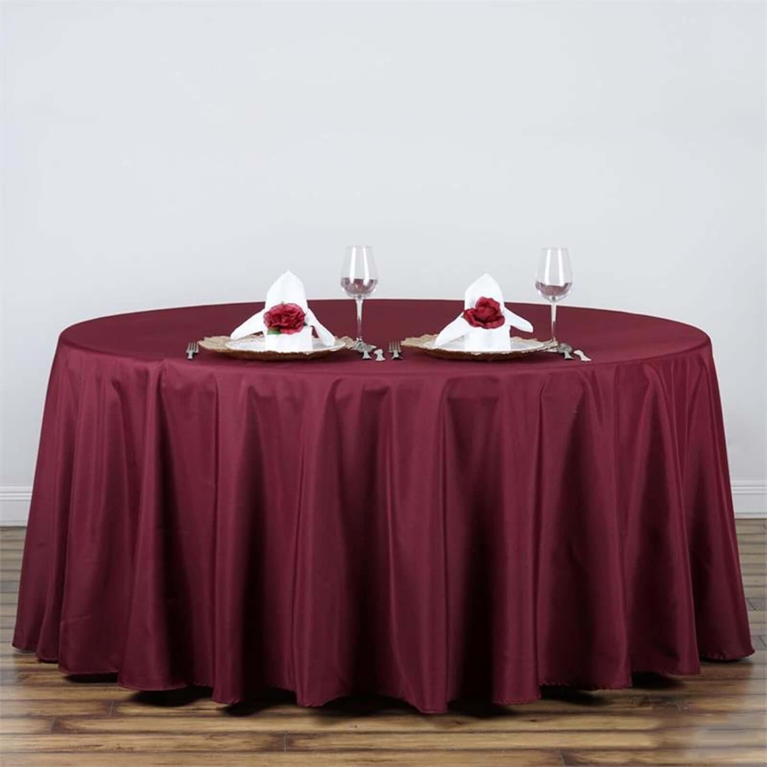 Efavormart Round Tablecloth, 132 Inch Stain & Wrinkle Resistant Washable Table Cloth, Decorative Polyester Fabric Table Cover for Banquet, Wedding, Dining- Burgundy