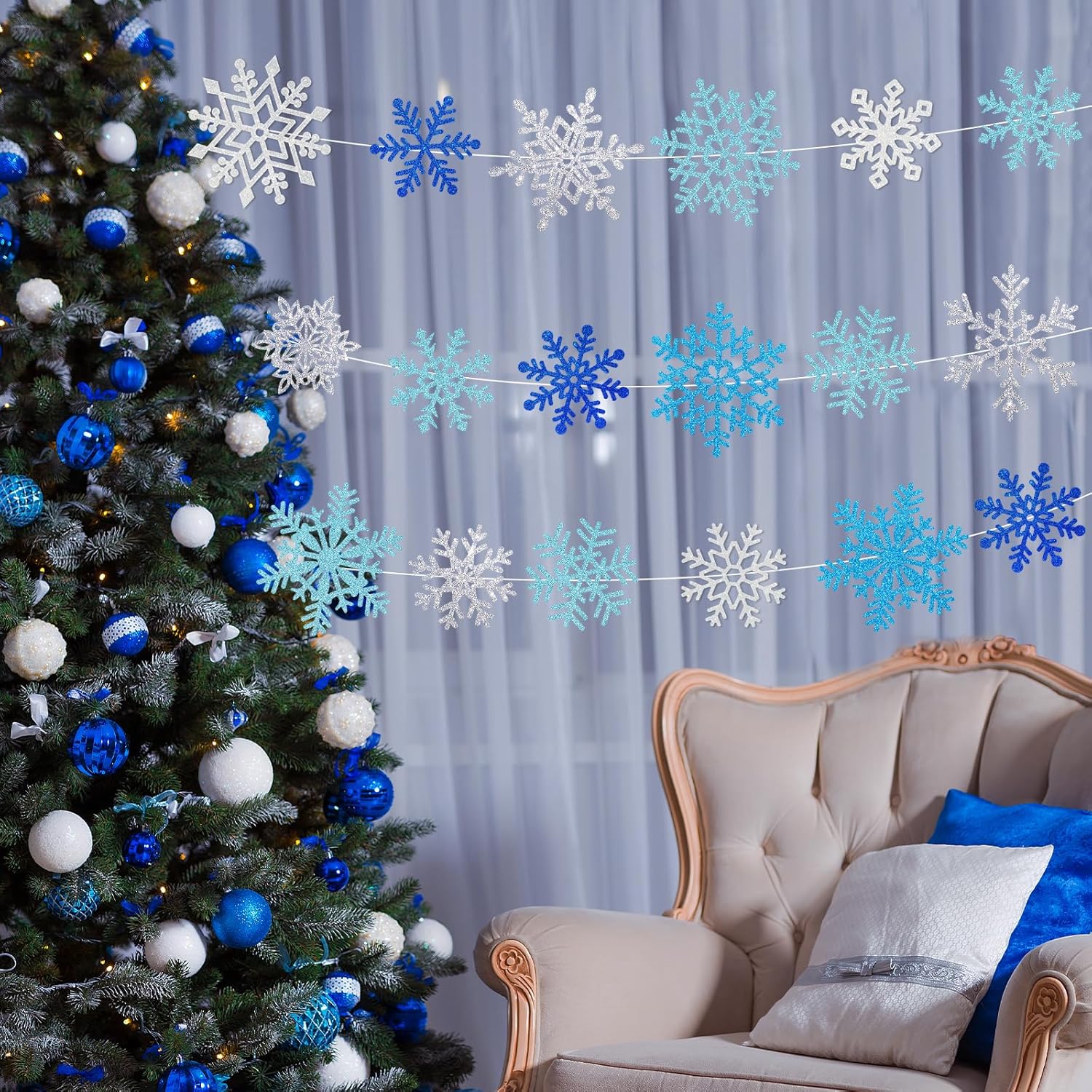 • Intricate Snowflake Designs: Featuring 15 unique patterns, our blue and silver christmas decorations features delicate glitter detail on both sides, adding a touch of sophisticated charm. The variety of shapes and patterns helps transform any space into a dazzling winter scene, making them ideal for creating an enchanting, layered effect across ceilings, walls, or windows