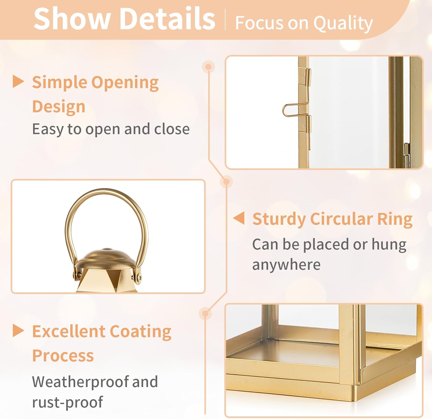 • 【Lantern with Practical Design】Made from high-quality metal with glass, this lantern doesn’t come with a candle, so you can mix and match it with your favorite accessories. It can be hung or placed on a flat surface, and it’s designed to be windproof, even pet-proof.