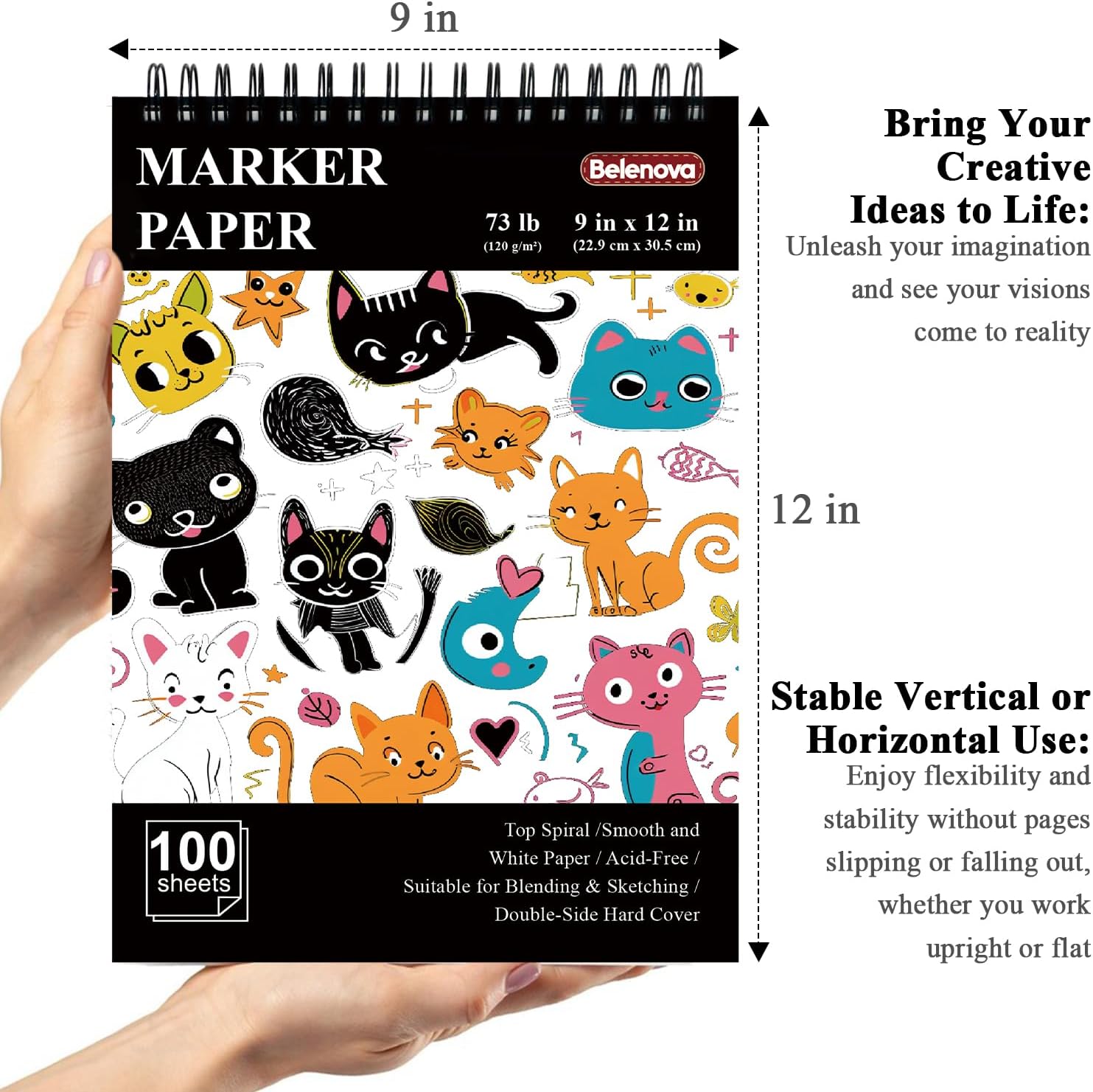 Belenova 9" x 12" Marker Paper Pad, 100 Sheets Bleedproof Sketchbook for Alcohol Markers - 73lb/120gsm Art Supplies for Drawing & Coloring (Kids/Adults).