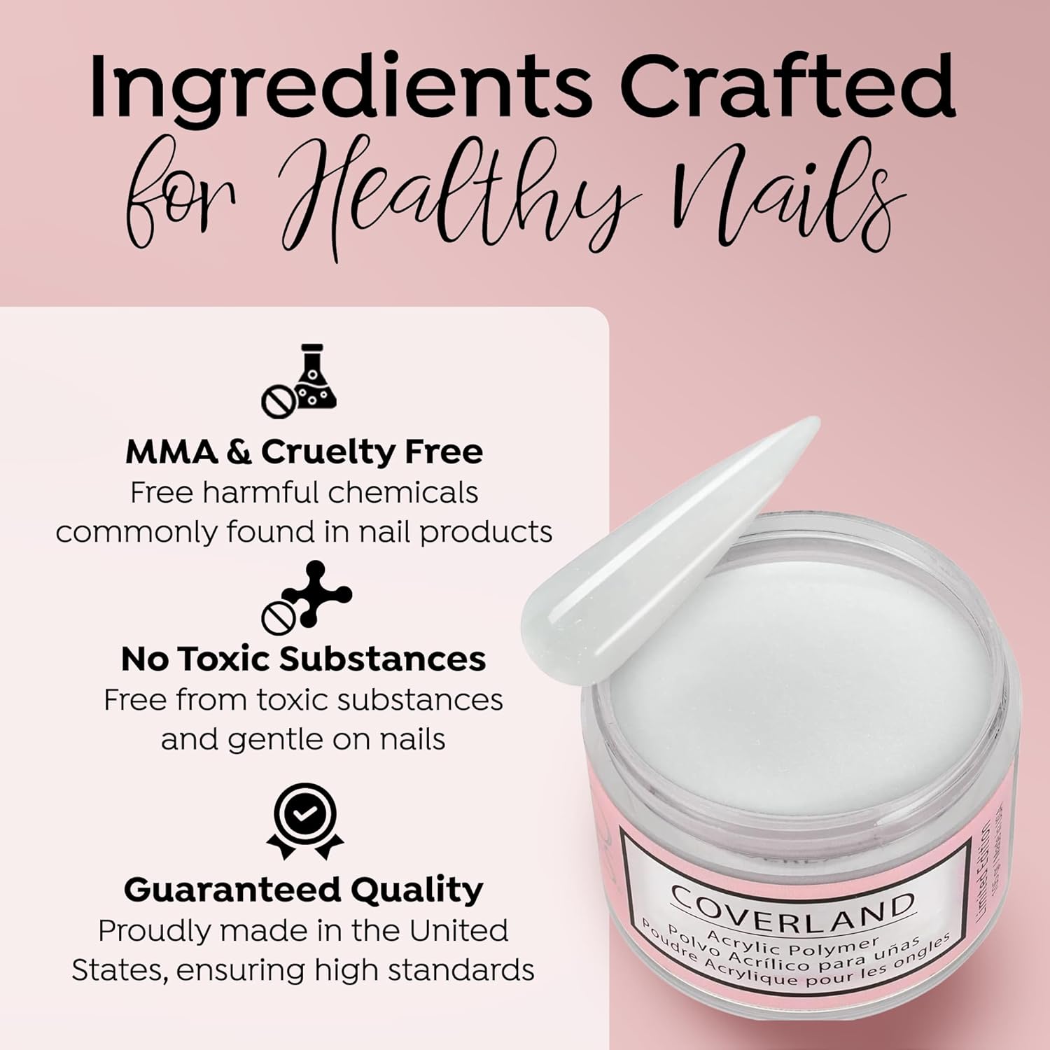 • CAMOUFLAGE IMPERFECTIONS: Coverland Polymers cover the nail bed with highly saturated skin tones and colors, helping to improve aesthetic appearance and hide imperfections. This specially formulated solution ensures a smooth, even application, allowing you to create flawless nail art with ease
