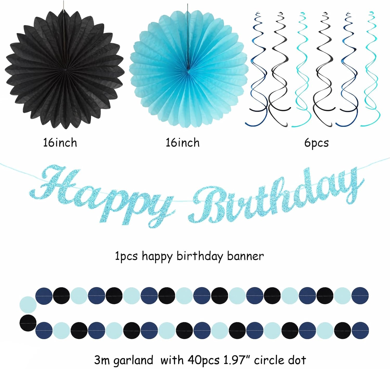 Light-Royal Navy-Blue Black Birthday Party-decorations - 21pcs Boys Men Happy Banner,Paper Streamers Lanterns Honeycomb,Tissue Pom Poms Fan,Adult Supplies Decor 16th 20th 40th 45th 50th 60th Huglony