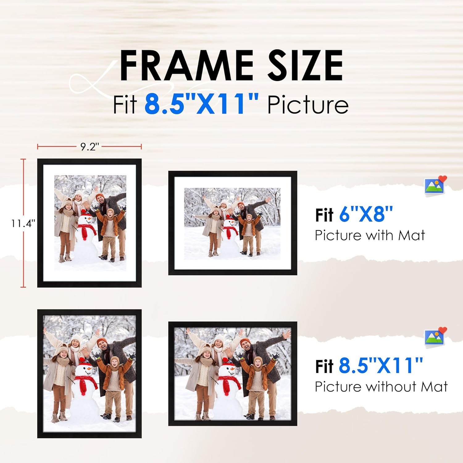 • Vertical & Horizontal Display:The picture frames can be hung on a wall in horizontal and vertical orientations. Fits 6x8 inch pictures with mat or 8.5x11 inch without mat. Ideal frames for gallery wall displays and home décor.