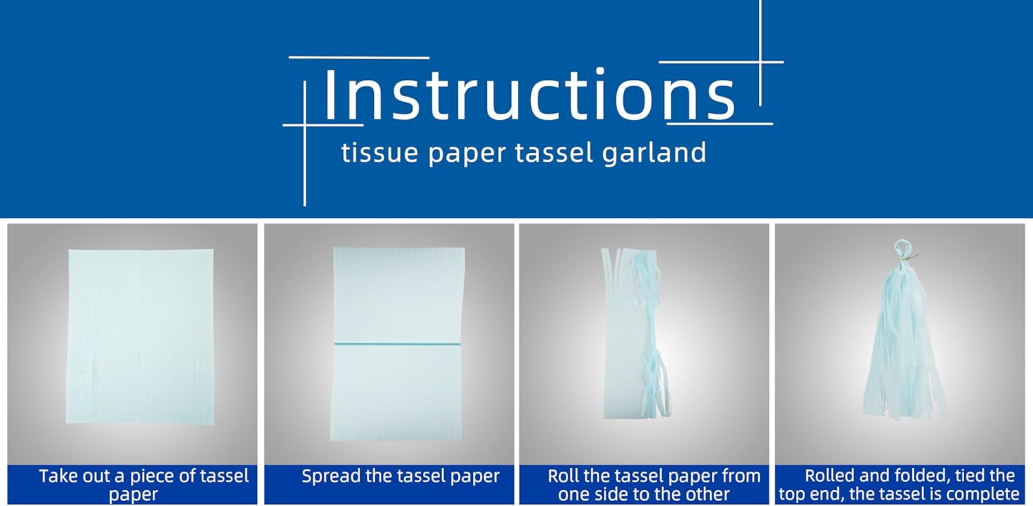 • 【Package Including】The decorations kit include 15pcs tissue paper tassel garland in 4 colors,navy-blue,white,silver,teal,each tassel is approx 13.8inches in length