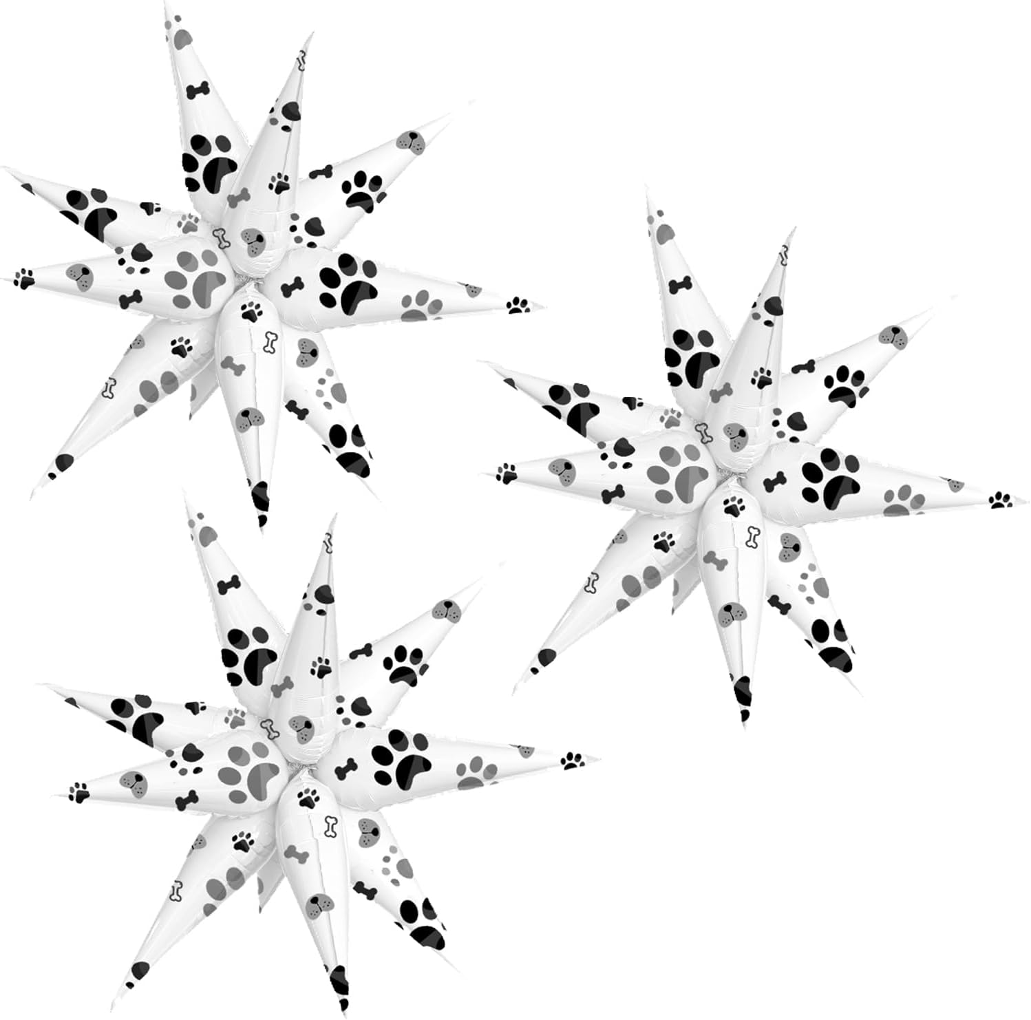 3pcs 26inch 3D paw Explosion Star foil balloon, dog paw theme Foil Cone star burst Balloons for dog Birthday Wedding New Year Party Event