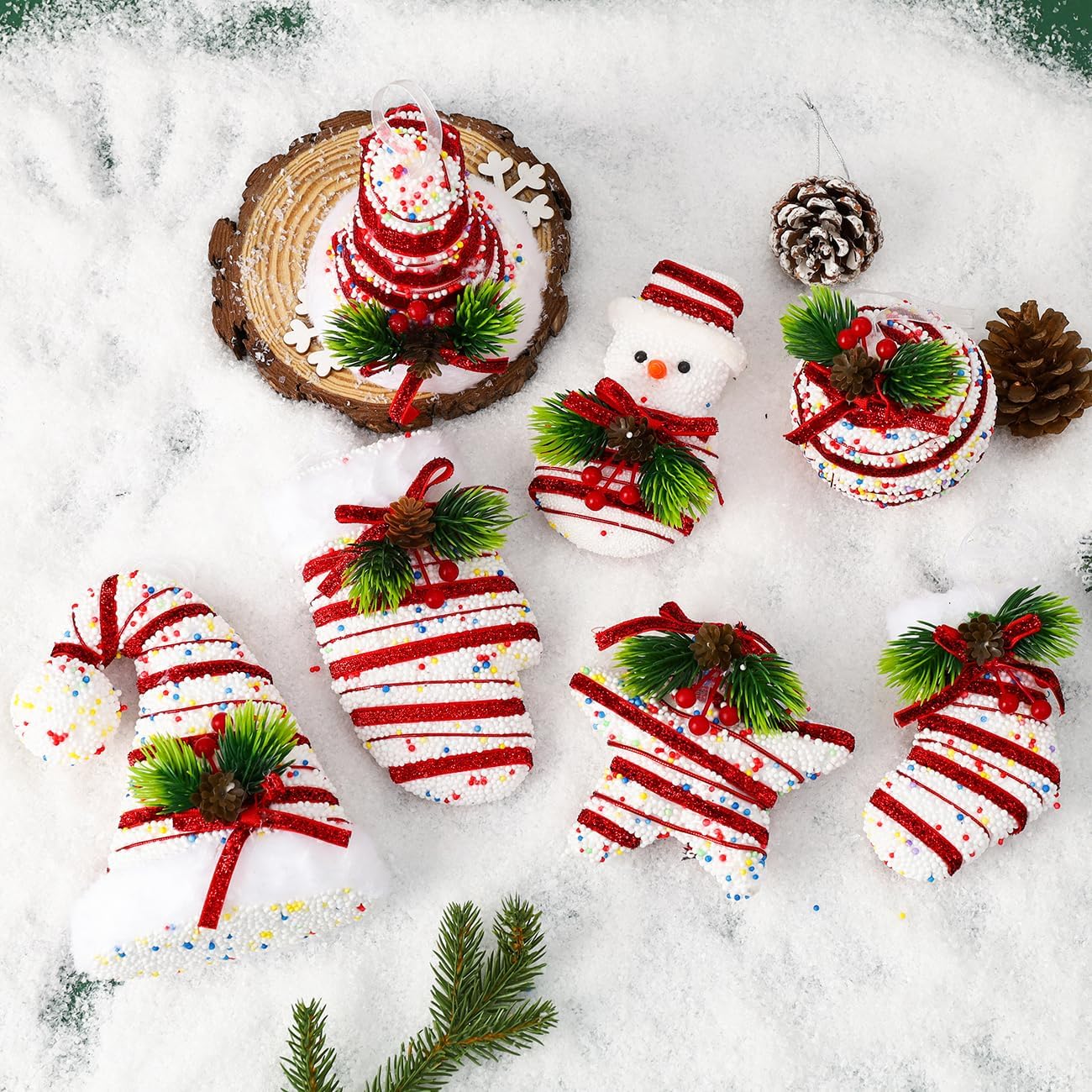 • Candy Cane Christmas Ornament Set: You will receive 6 different styles of candy cane pendants, each one uniquely handcrafted with exquisite details, looking just like real candy canes. Perfect for decorating medium to large Christmas trees. They can be inserted into the Christmas tree or hung on the tree, garland, or anywhere you like.
