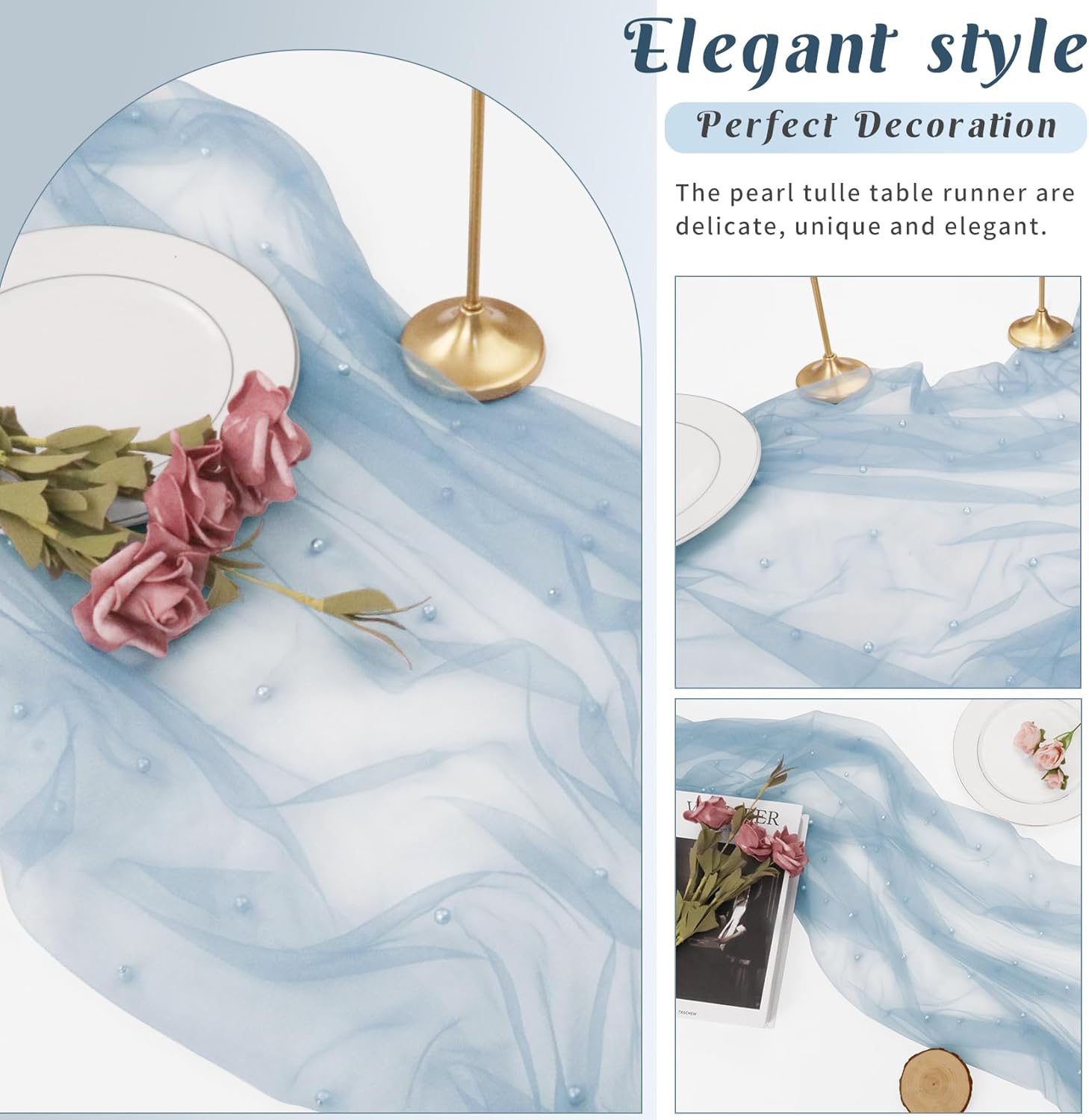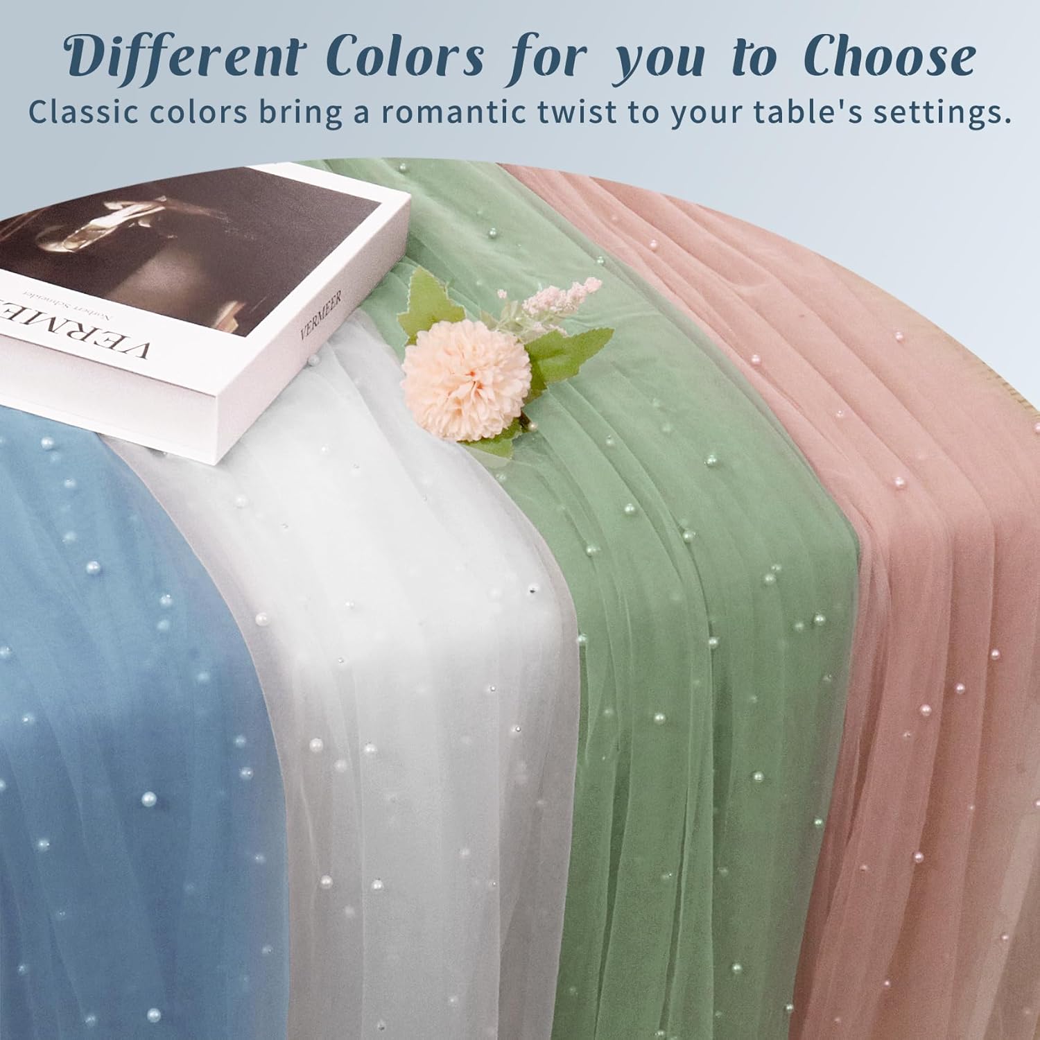• 【Exquisite Workmanship】 These romantic table runners are made of premium tulle. Soft feeling, sheer, reusable, easy to clean and fade resistant. Delicate pearls embellished table runner works perfectly for many types of event decor, which will add a ton of elegance to any space.