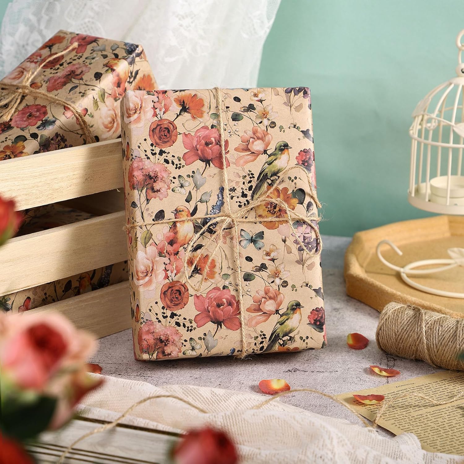 • Vintage Flower Wrapping Paper Roll: Adorn your gifts with a blooming flower and bird print that exudes charm and elegance. The flower wrapping paper with butterfly make it ideal for creating a wonderful gift presentation that leaves a lasting impression