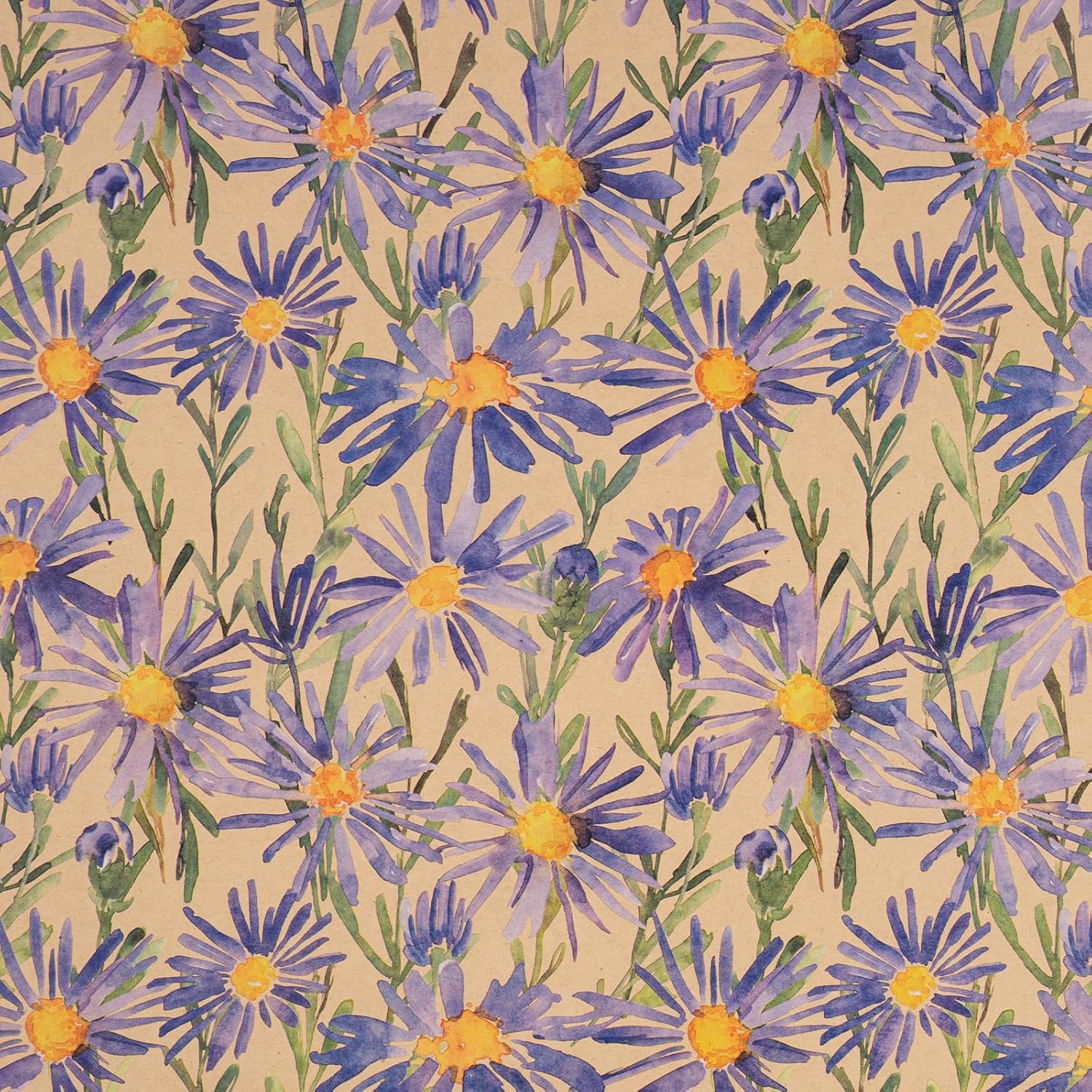 RUSPEPA Purple Daisy Floral Wrapping Paper, Watercolor Flower Kraft Paper - Mini Roll - 17 in x 32.8 ft Each Roll, Gift Wrapping Paper for Girls, Women, Wedding and Birthday,