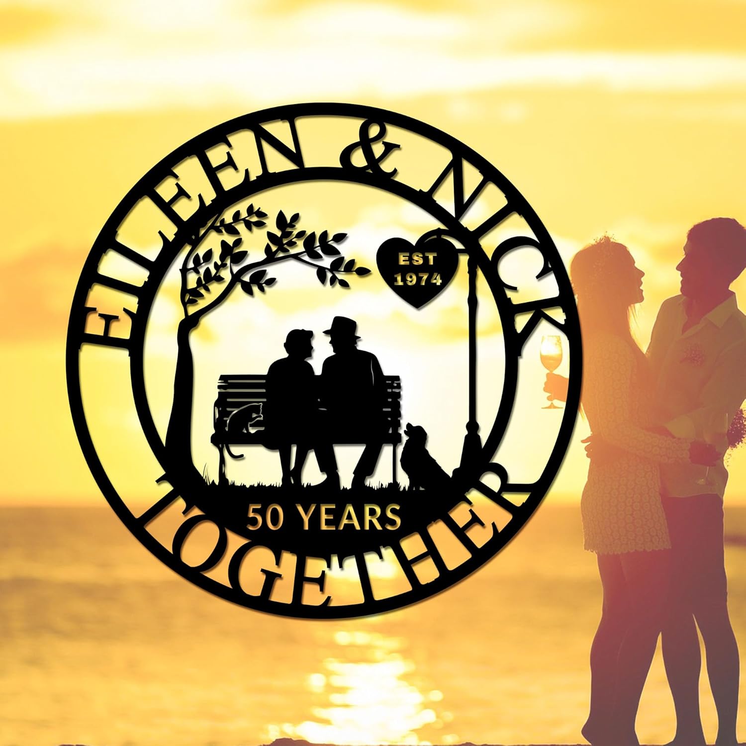 Custom Wedding Anniversary Sign, Personalized Wedding Gifts for Parents, Custom Metal Couple Name Sign, 50th or Any Year Wedding Anniversary Metal Wall Art, for Husband Wife