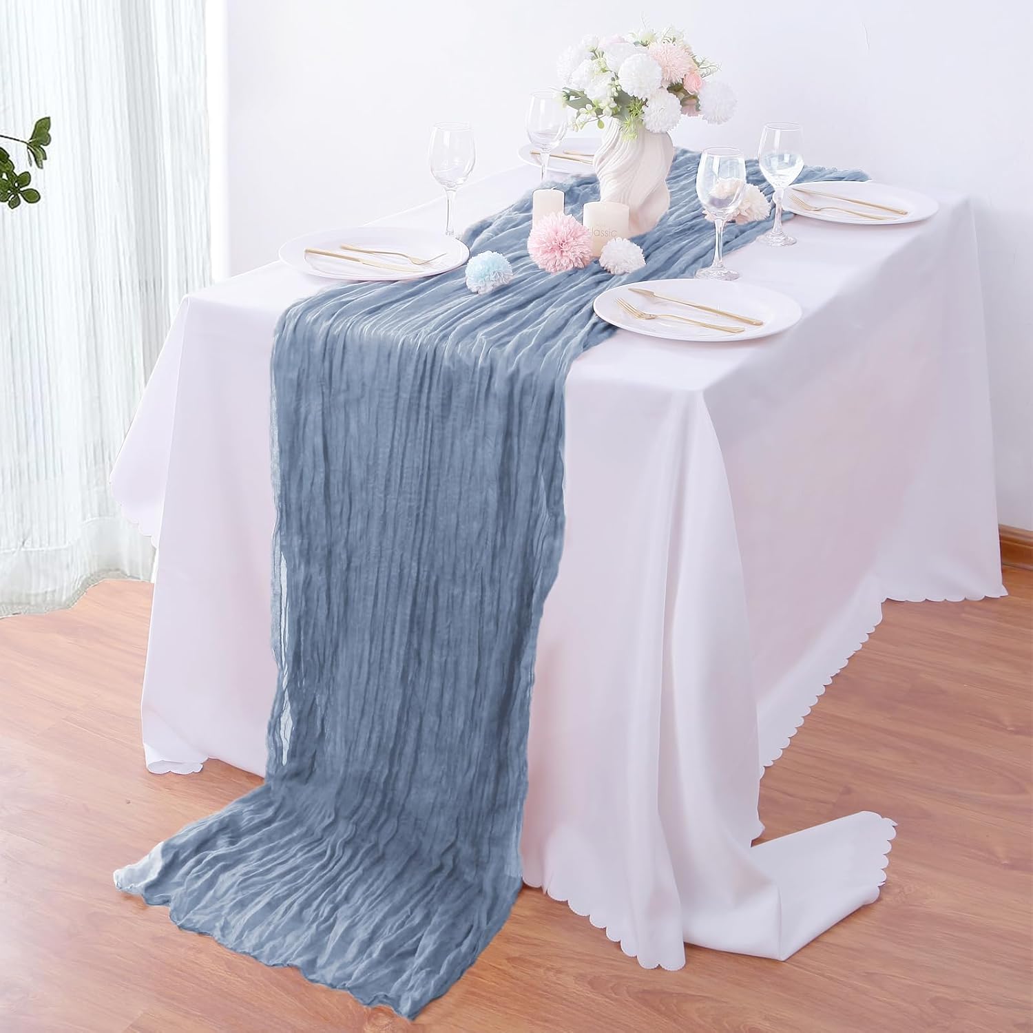 4 Pack Dusty Blue Cheesecloth Table Runner 35x120 Inch Boho Gauze Fabric Cheese Cloth Table Runner 10Ft Rustic Romantic Sheer Table Runners for Wedding Party Bridal Baby Shower Long Table Decoration