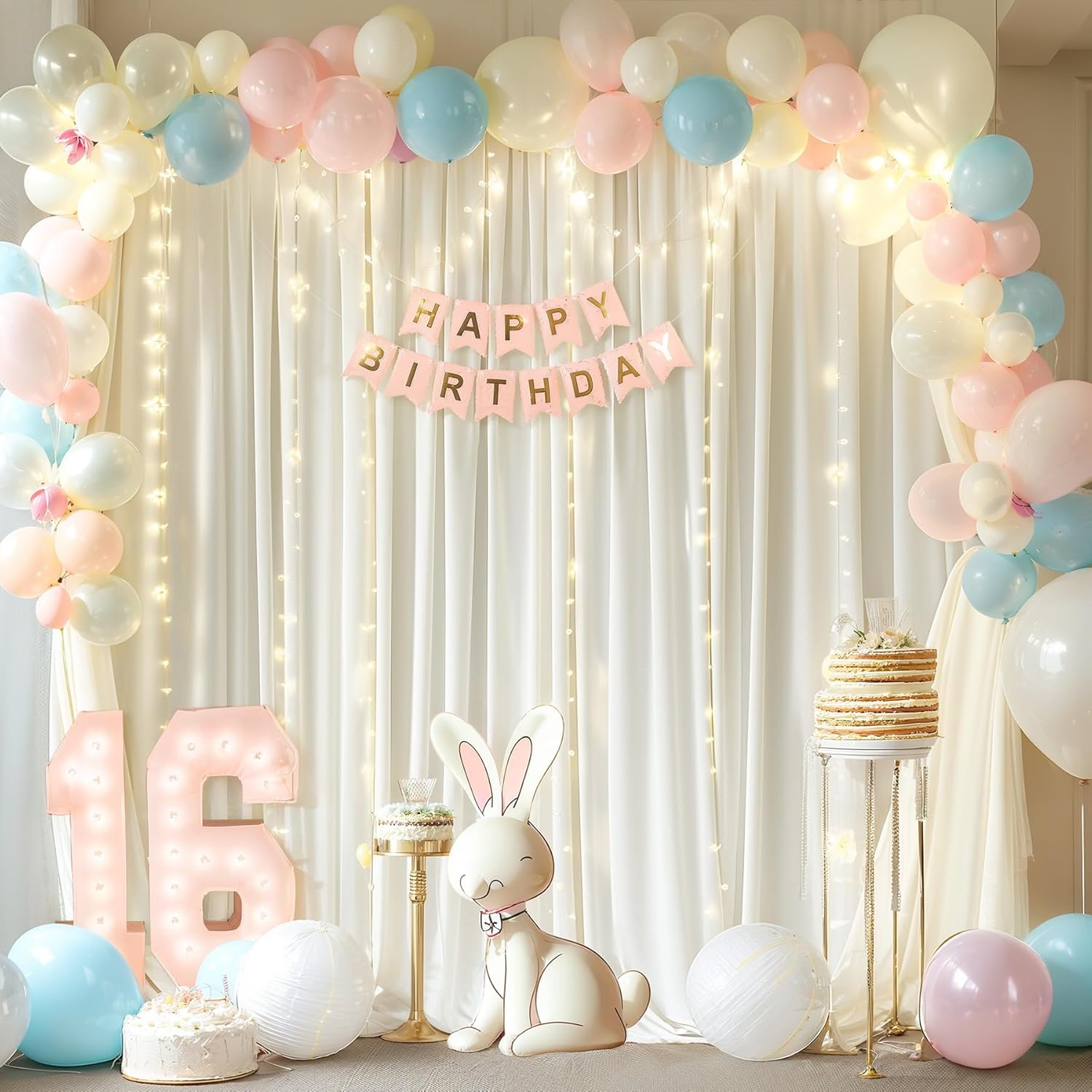 • Ivory Backdrop Curtains with Lights for Parties - Our ivory backdrop curtain can be used indoors and outdoors, they are perfect for baby shower, birthday party, wedding, graduation ceremony, dessert tables, anniversary, New Year's Eve party, stages photography or any other important events. It is also a good choice to use this white backdrop curtains for photoshoot.