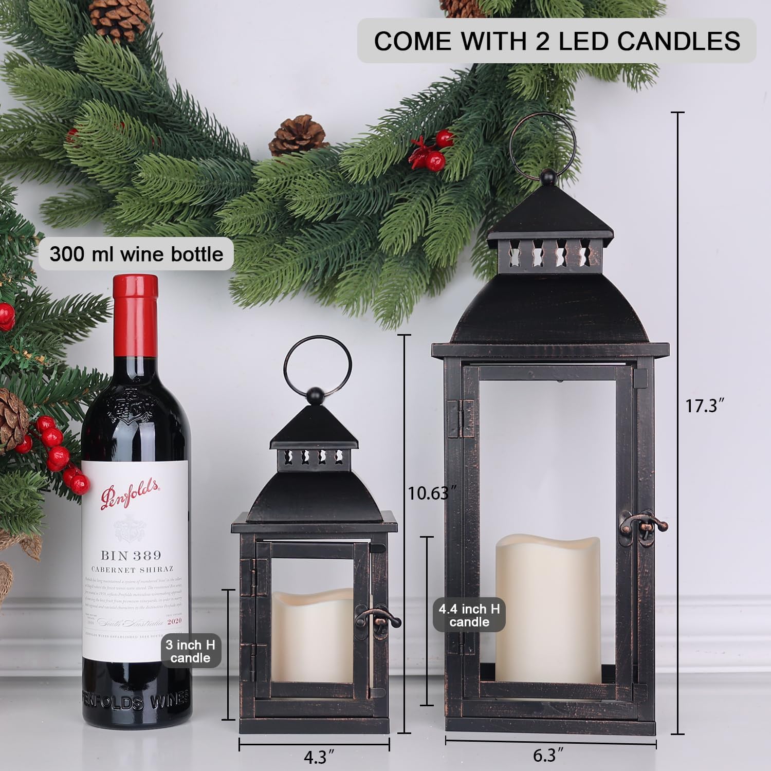 • Raised dimensions——We noticed that your home likes to be filled with more interesting items. In addition to the table top, the patio, garden, porch, fireplace, pool, sofa all need more size decorations options. To cater for more scenes, we designed a set of 2 candle lanterns. The set consists of three candle lanterns of different sizes, the large 17.3" x 6.3" x 6.3"; small 10.63" x 4.3" x 4.3".