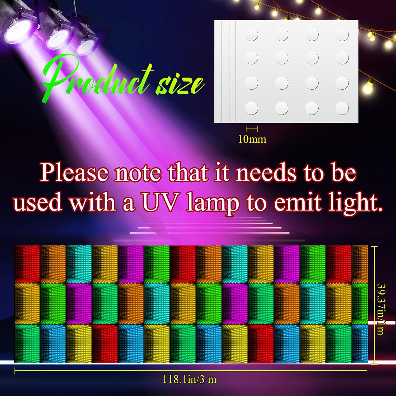 • Package Contents: the package includes 1 piece of neon dance floor and 4 sheets of adhesive dots (20 pieces per sheet), a nice combination that is suitable for both indoor and outdoor use and may fulfill your diverse party decor and use requirements
