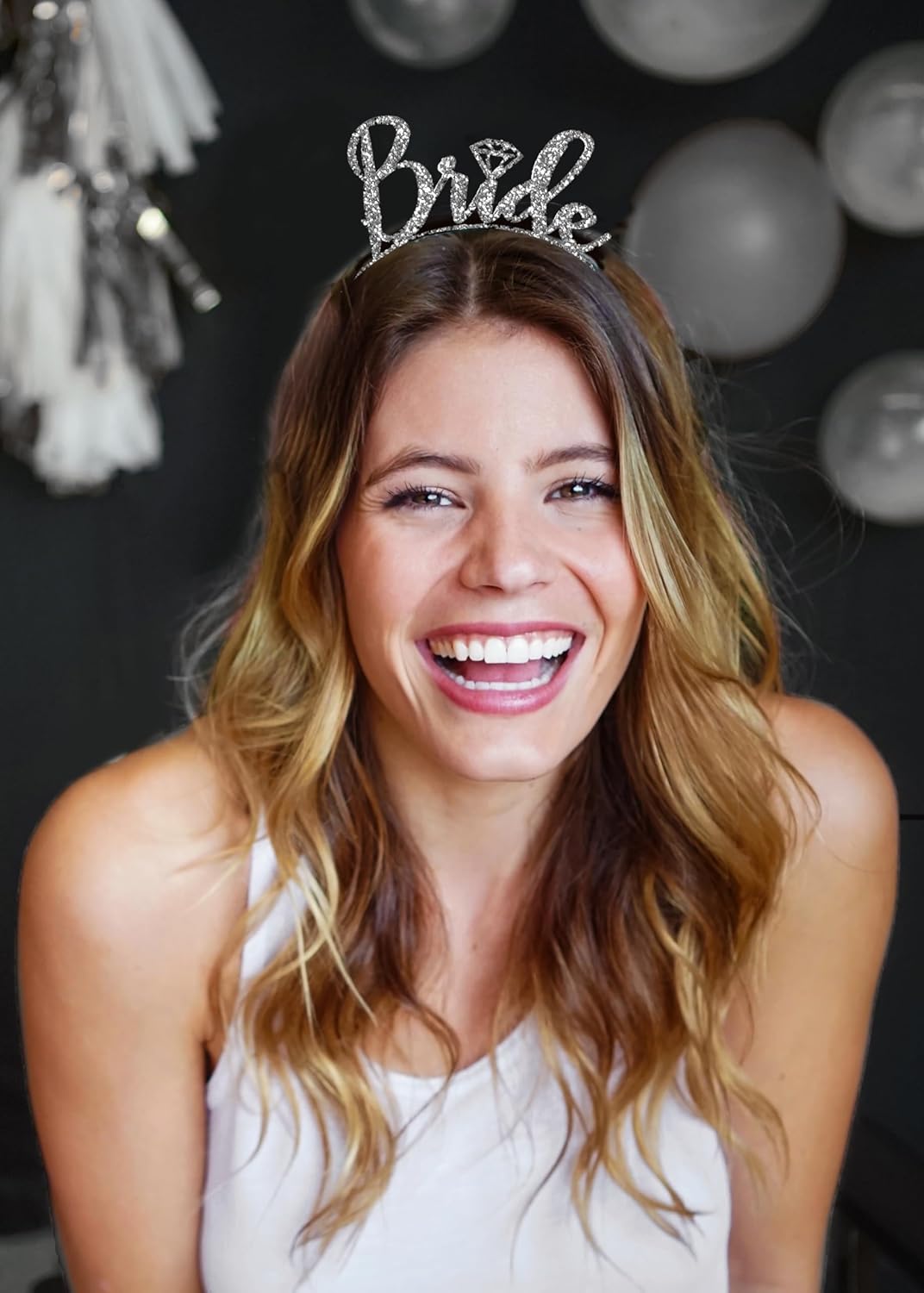 • A SET OF THREE! This set includes a gorgeous sparkly headband, a soft satin sash, and a fun short veil. This is the perfect keepsake gift for the bride to wear to her bachelorette party!