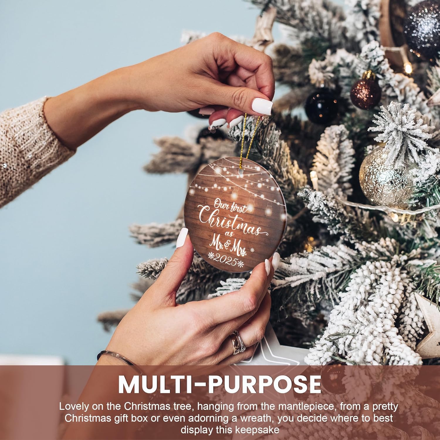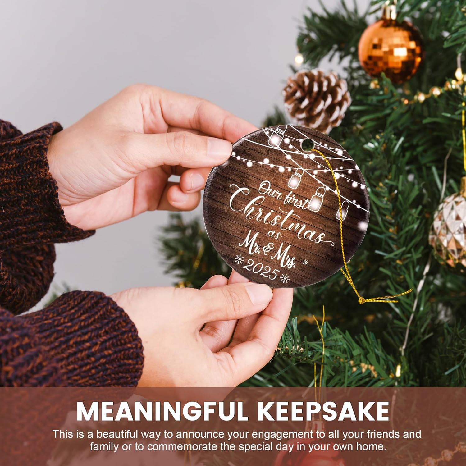 Wedding Gifts for Couples 2025, First Married Christmas Ornament, Mr and Mrs Gifts, Bridal Shower Gift for Bride, Couple Gift for Newlyweds (Ceramic Ornament)
