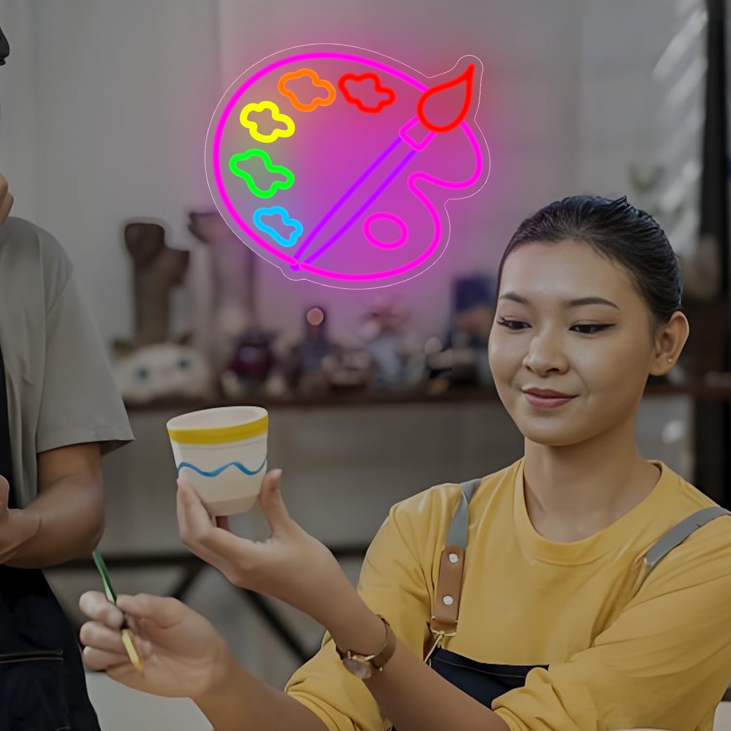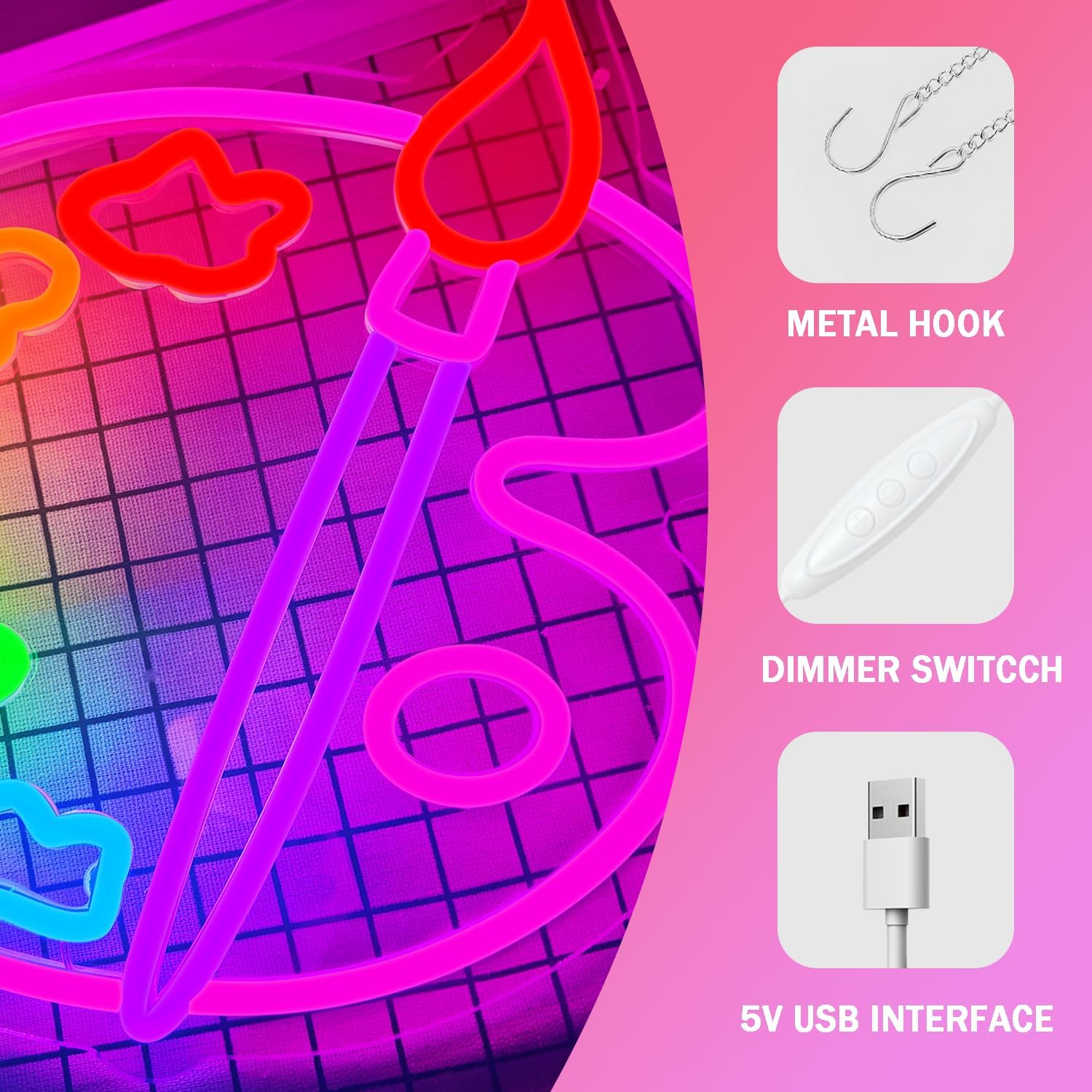 Paint Palette Neon Sign Art Studio Room Led Lights Dimmable Led Signs for Bedroom, Light Up Signs for Art Classroom Studio Drawing Room Paint Party Decorations