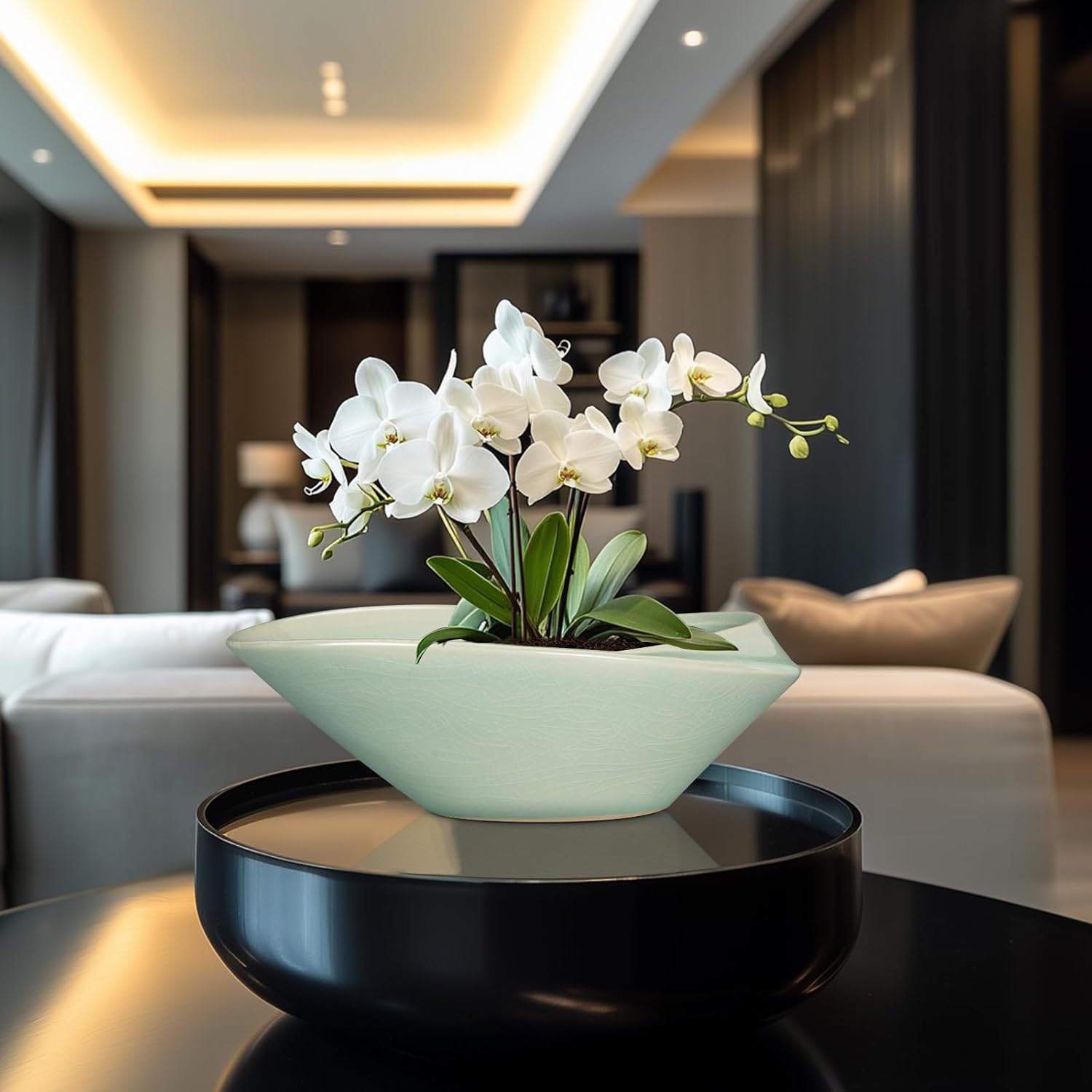 • 12 Inch Pots for Plants for Home Decor: The modern style large light gray bonsai pot for plants that can be placed on a table, living room, balcony, patio, garden, and other places