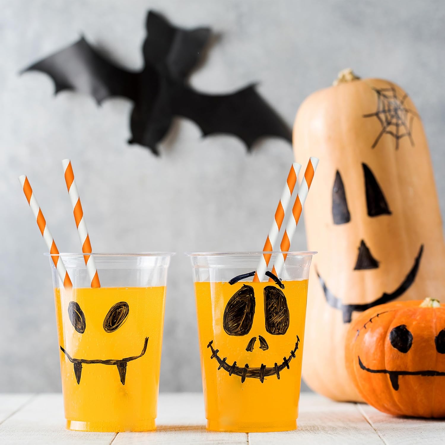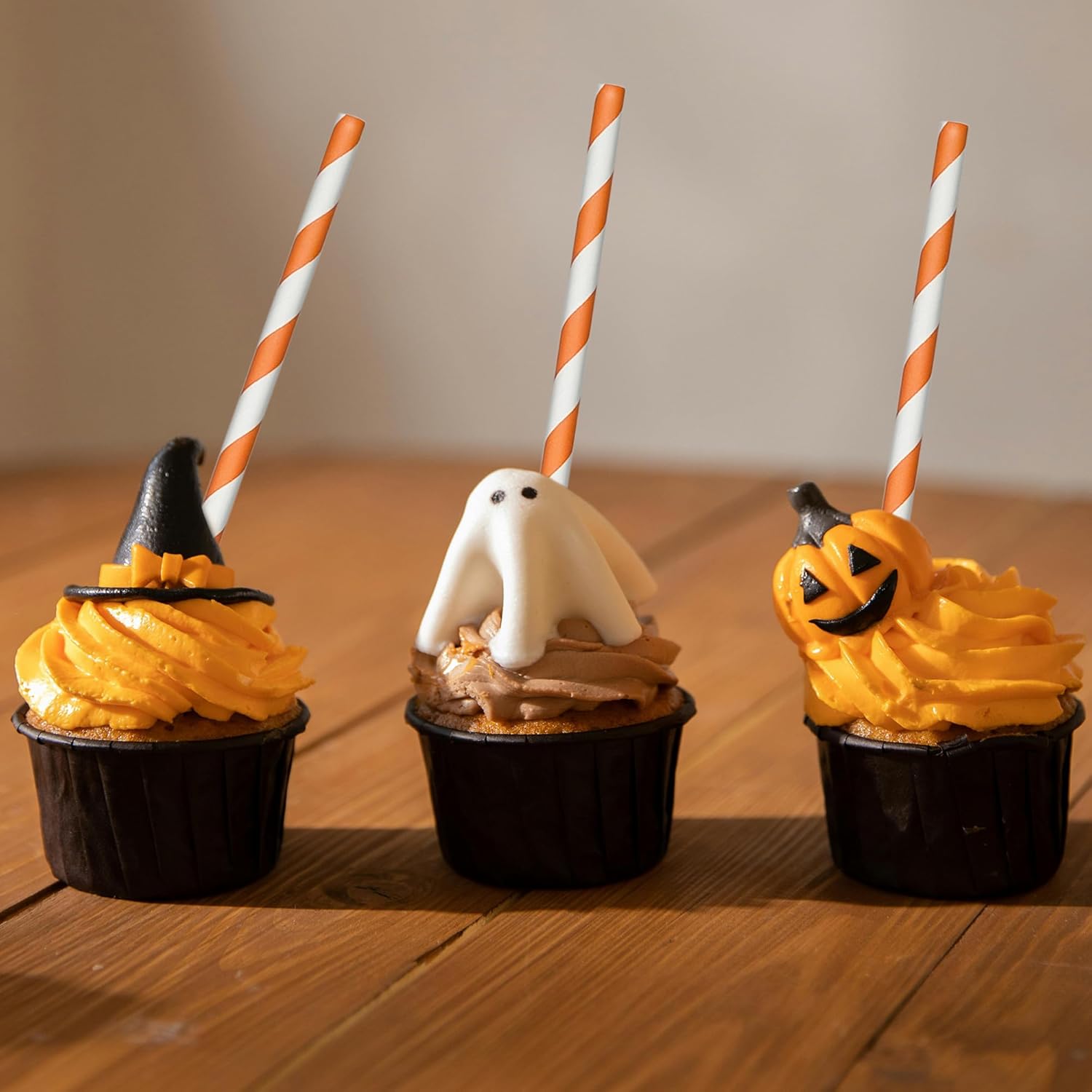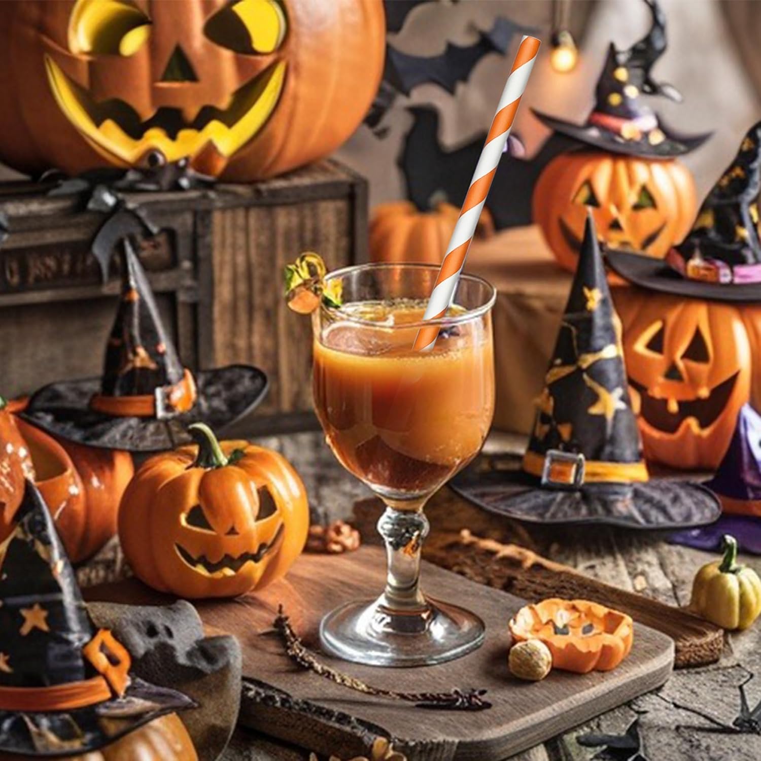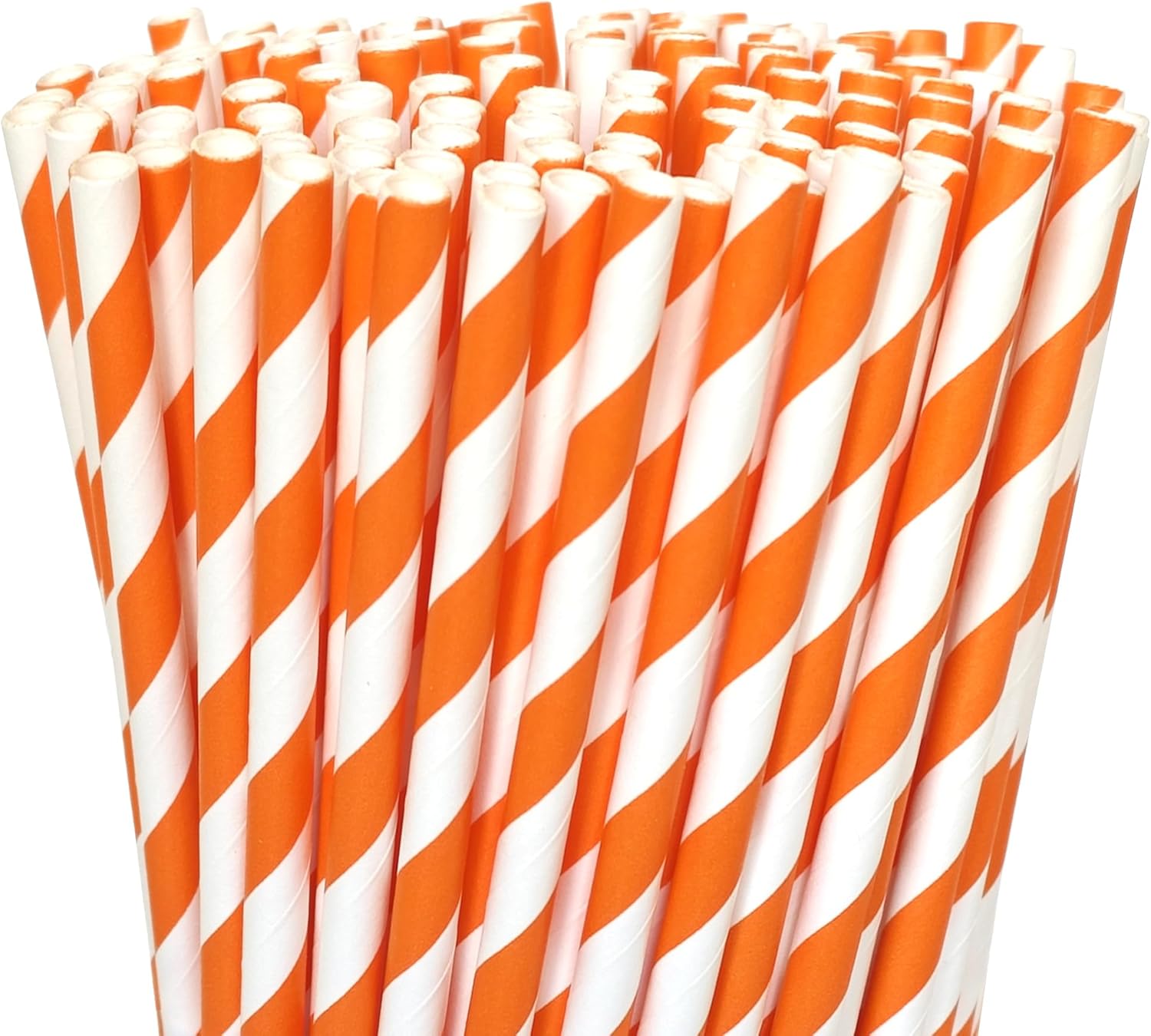 200 Orange Straws, Biodegradable Orange and White Paper Striped Straws for Coffee, Cocktail, Lemonade, Milkshake, DIY Decorations, Weddings, Bridal, Baby Shower, Party Supplies