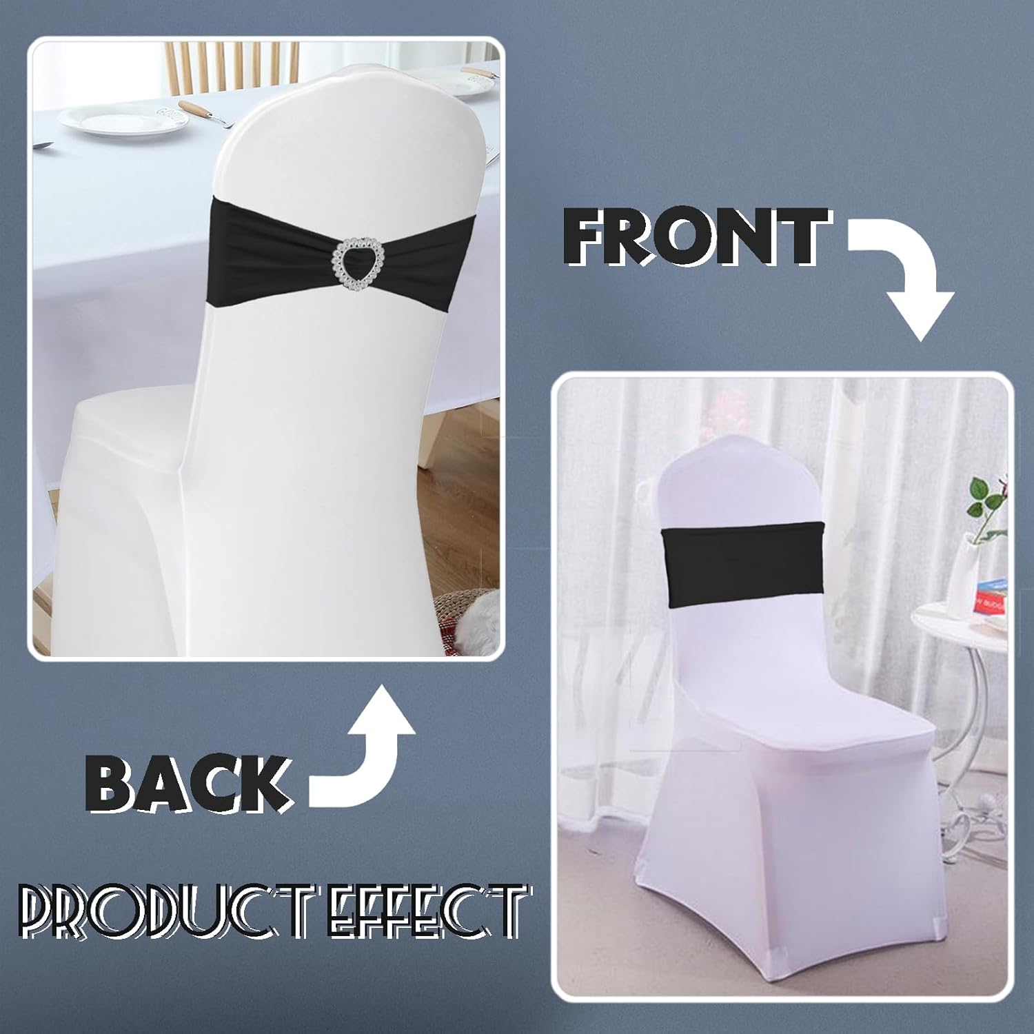 100PCS Spandex Stretch Black Chair Sashes Bows Universal Elastic Chair Cover Bands Ties with Buckle Slider for Wedding Party Birthday Reception Event Banquet Decoration(Black)