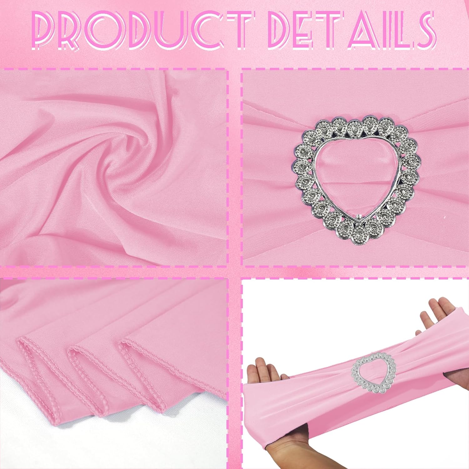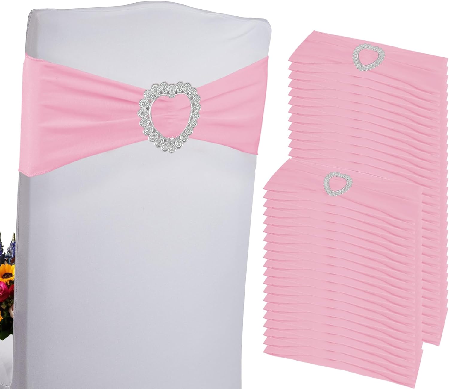 100PCS Spandex Stretch Chair Sashes Bows Universal Elastic Chair Cover Bands Ties with Buckle Slider for Wedding Party Birthday Reception Events Banquet Decoration(Pink)