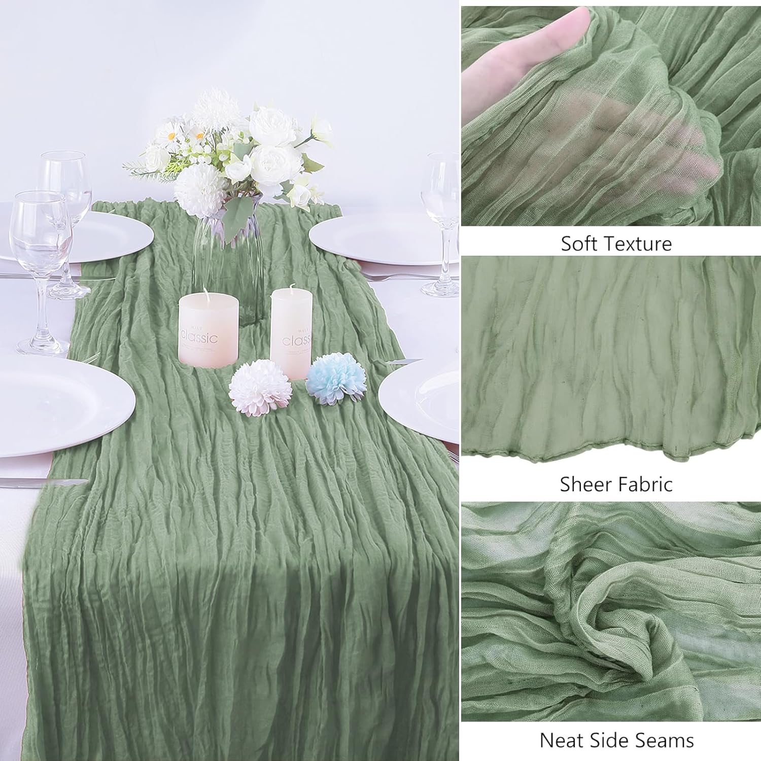 16PCS Sage Green Cheesecloth Boho Gauze Table Runner - 35x120Inch, Long, Rustic, Sheer for Wedding Party, Bridal Shower, Baby Table Decor