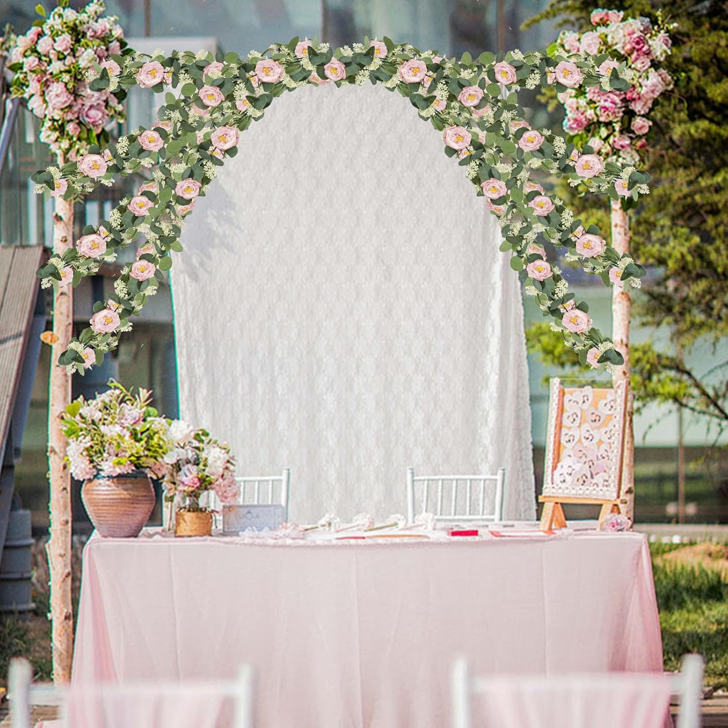 • 🍀🍀【Rose Garland Decor】: The handmade artificial Eucalyptus garland decorations are deal for any wedding or home decoration, such as bedrooms, living rooms, dining table, arches, chairs, backgrounds, corridors, backgrounds, hung on both sides of doors or wedding arches etc. DIY event center. Whether you want to create a romantic atmosphere or add beauty to your life, this fake rose flower vine can blend perfectly.