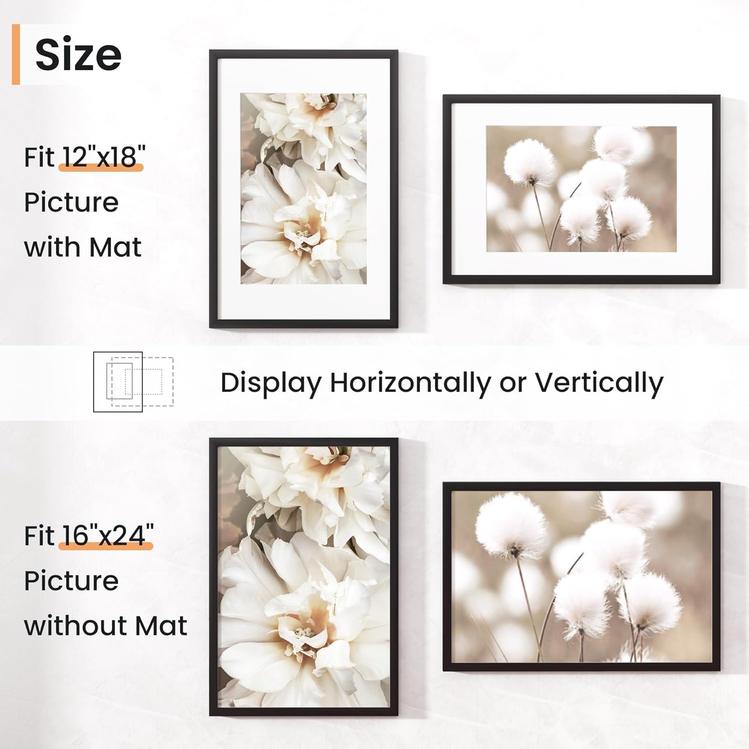 16x24 inch Picture Frame, 16x24 Photo Frames with 12x18 Removable Mat - High Definition Plexiglass - Vertical and Horizontal Display - Wall Hanging Poster Frame - Black, 5 Pack