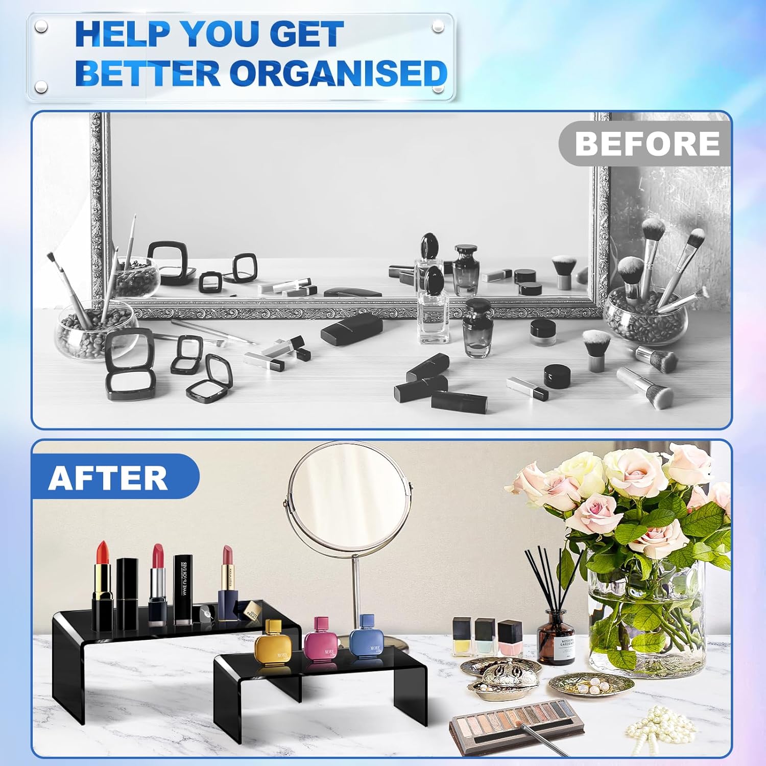 • Reusable & Cleanable:These display risers are also very easy to use, no assembly required no splicing, just put them in the right place for the items you need to display or organize! These acrylic risers display stands are washable and reusable. Simply wipe perfume stand with a damp cloth with warm water and the dust on the Showcase Stands will disappear, very convenient. It won't hurt to use it again afterwards