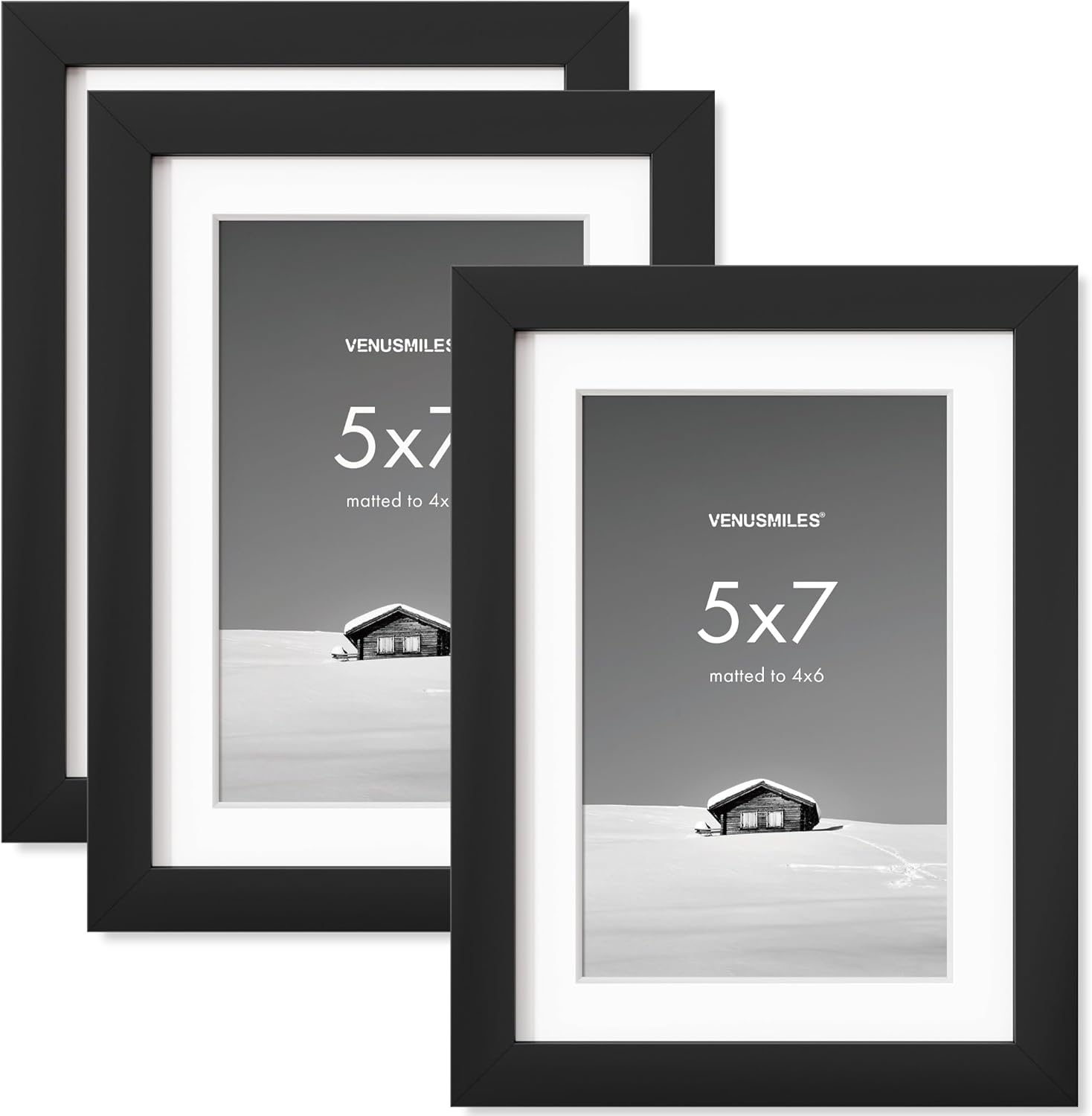 5x7 inch Picture Frame, 5x7 Photo Frames with 4x6 Removable Mat - High Definition Plexiglass - Vertical and Horizontal Display - Wall Hanging Frame - Black, 3 Pack