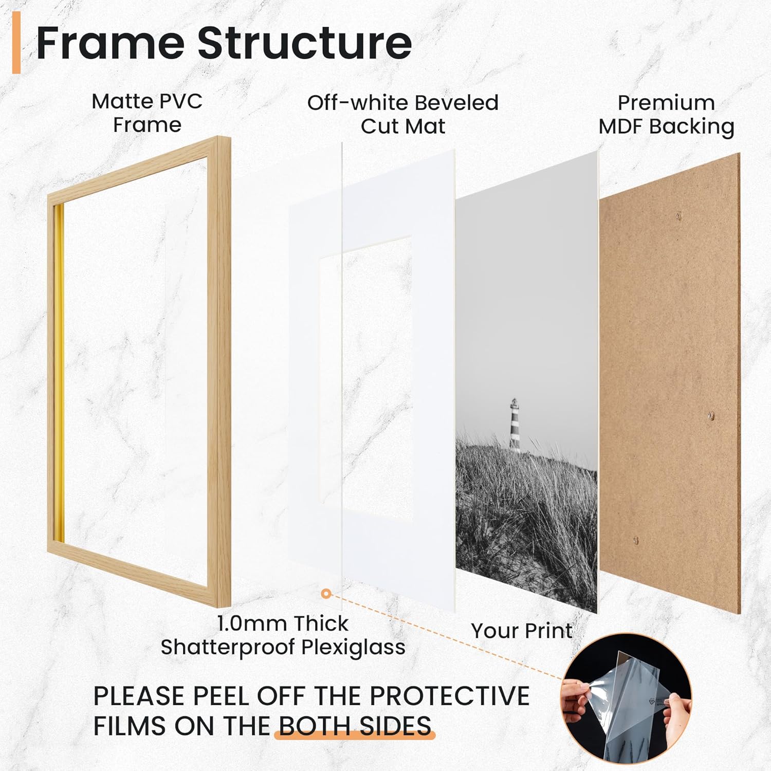 • High-Quality: Our 8x10 picture frame is made of environmentally friendly plastic, strong and durable. With a moisture-proof backplane design, the angle is hand-polished to stop scratching your skin. Use a polished polycarbonate board front to see your photos clearly.