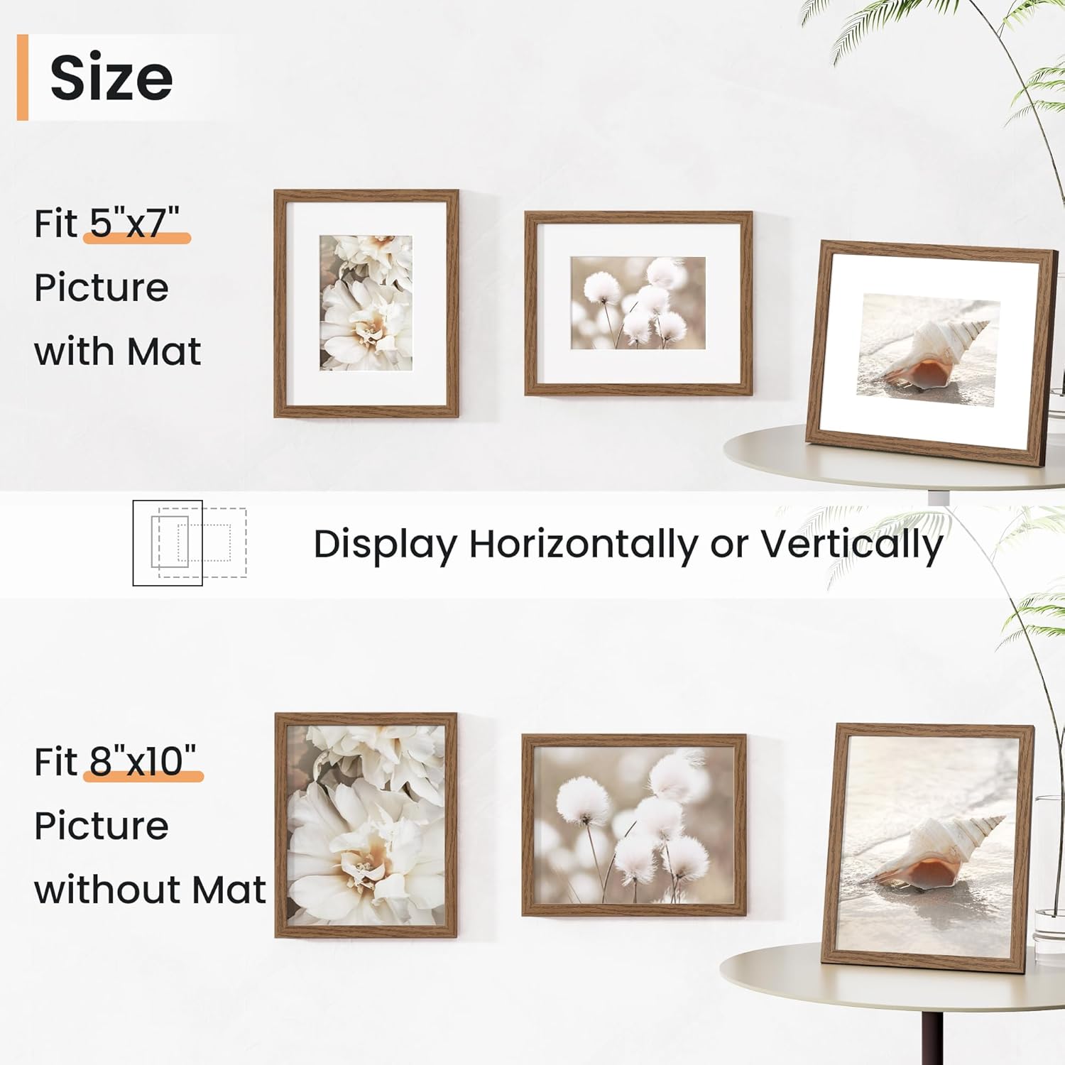 8x10 inch Picture Frame, 8x10 Photo Frames with 5x7 Removable Mat - High Definition Plexiglass - Vertical and Horizontal Display - Wall Hanging Frame - Walnut Color, 12 Pack