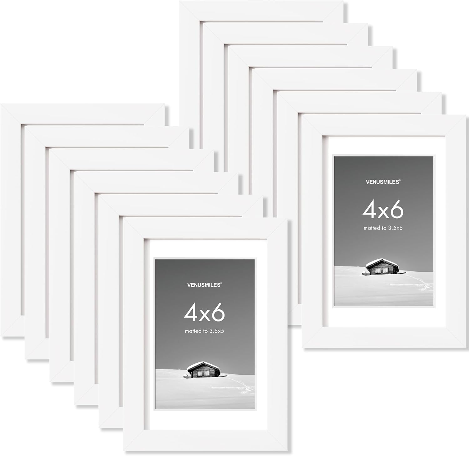 4x6 inch Picture Frame, 4x6 Photo Frames with 3.5x5 Removable Mat - High Definition Plexiglass - Vertical and Horizontal Display - Wall Hanging Frame - White, 12 Pack