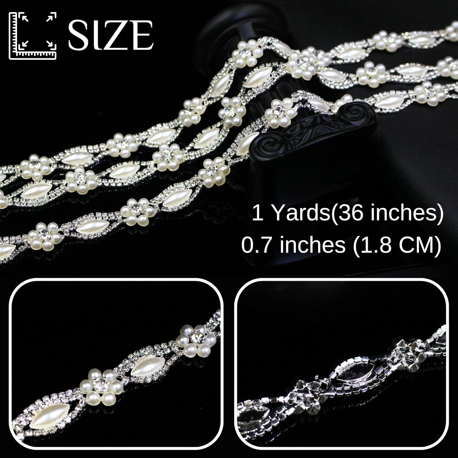 • Size: You will receive one roll of rhinestone chain, approximately 1 yard long and 0.7 inches (1.8 cm) wide, which is sufficient to meet your various decoration needs. You can also share it with friends or family. It's perfect for sewing trim and embellishments, and pearl garlands are also a great choice