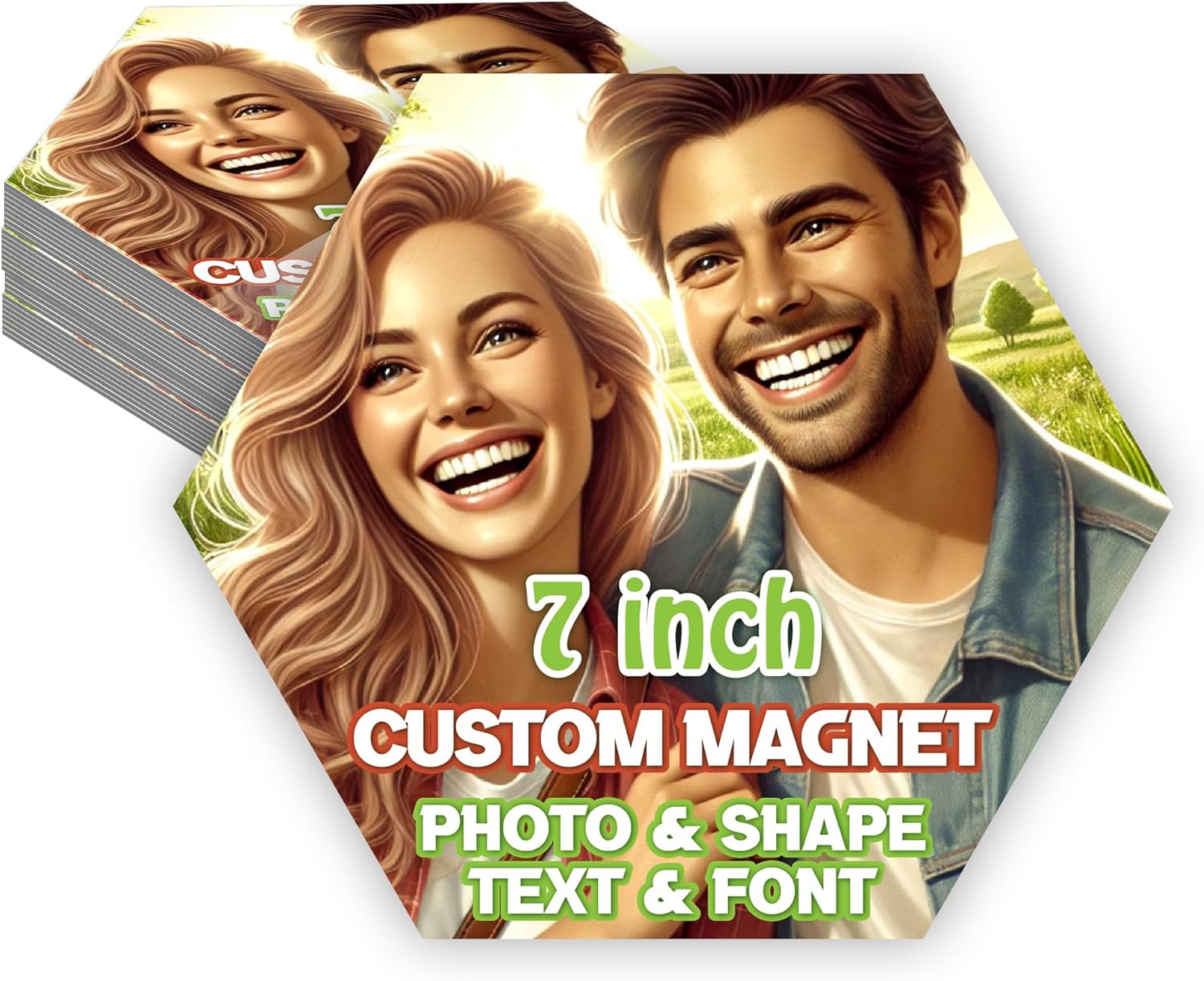KETABAO – 7" Customized Hexagon Magnetic Pictures Photo Magnet for Refrigerators, Storage Cabinets and Cars – Personalized Gift Ideas