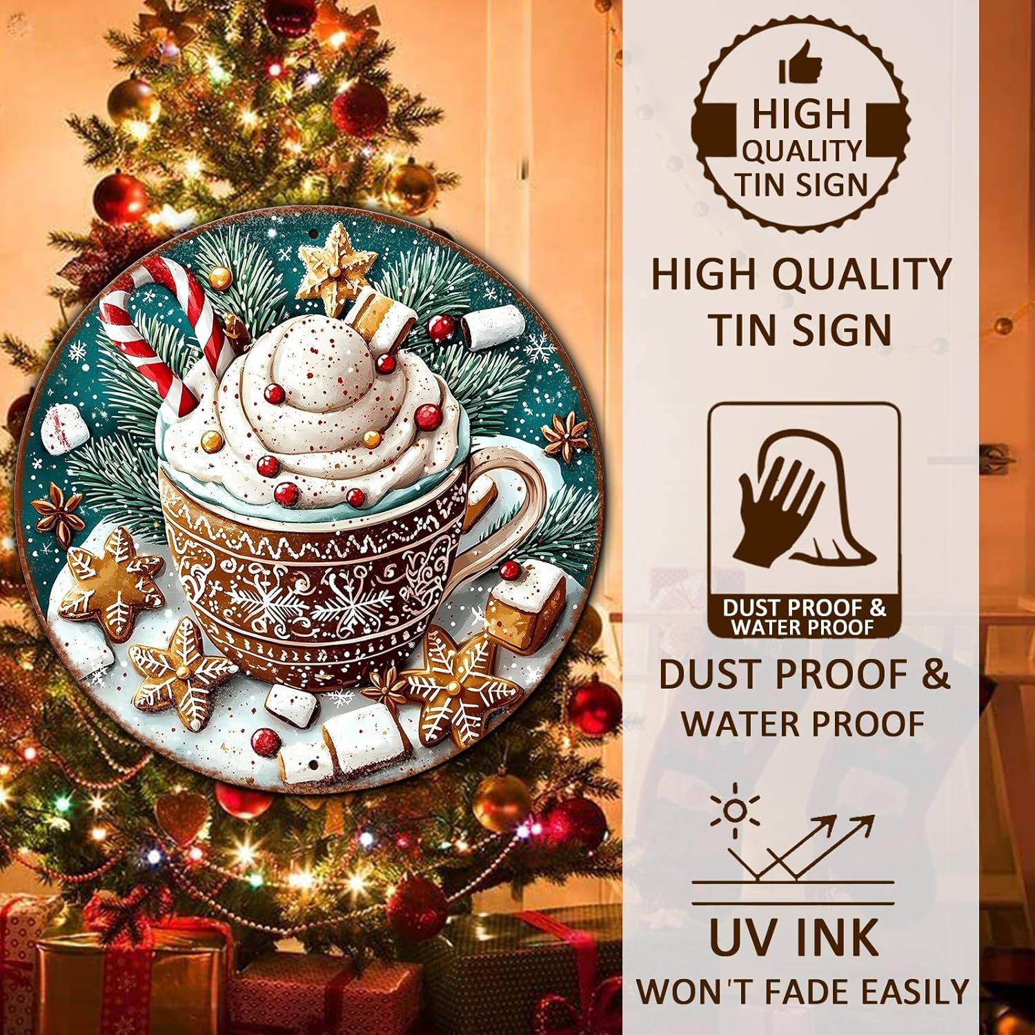 Round Christmas Signs Hot Cocoa Bar Metal Tin Sign Christmas Decor For Home Vintage Christmas Coffee Cocoa Tin Sign Hot Chocolate Bar Sign 12 * 12 in