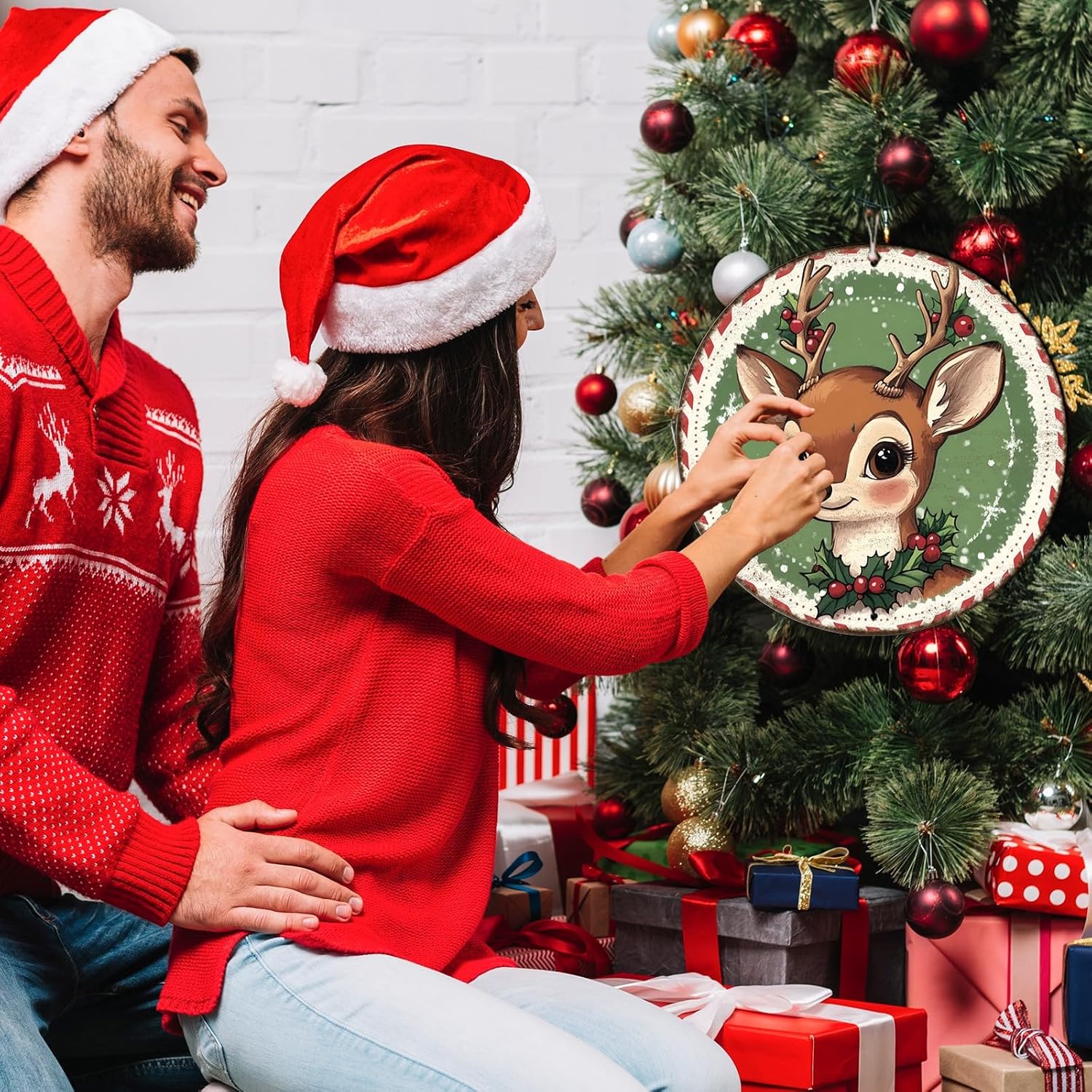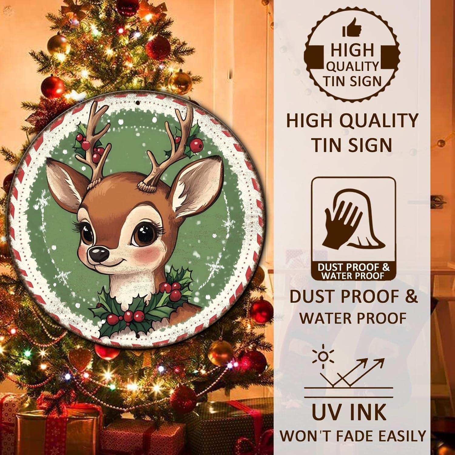 Round Retro Reindeer Metal Tin Sign - Vintage Christmas Decor for Home Coffee Wall - 12 * 12 in