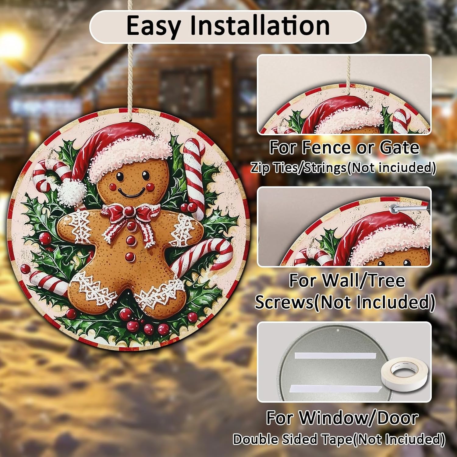 Round Christmas Metal Tin Sign Rustic Wall Decor Gingerbread Man Vintage Tin Sign Candy Canes Christmas Tin Sign for Home Garden Kitchen Bar Cafe Restaurant Garage Wall Decor 8 * 8 in