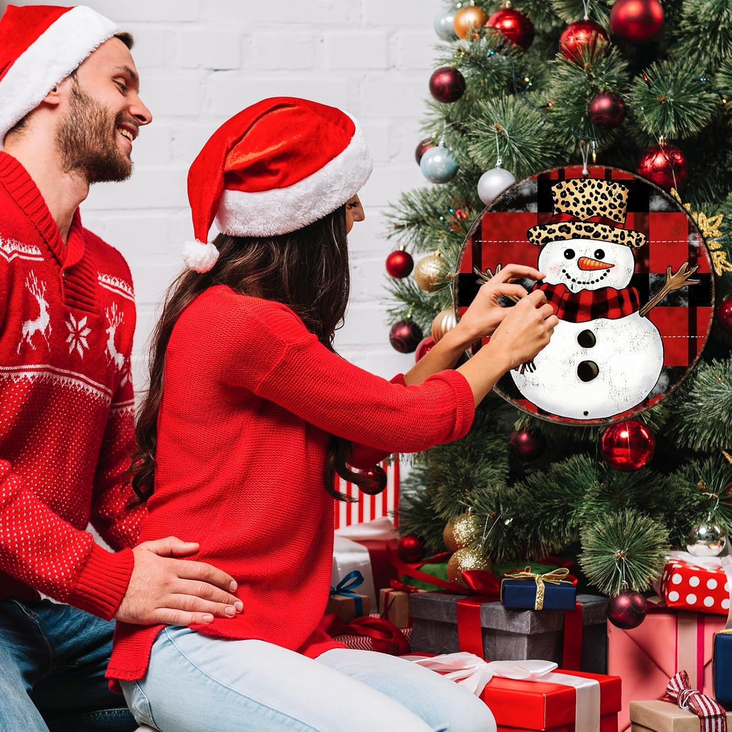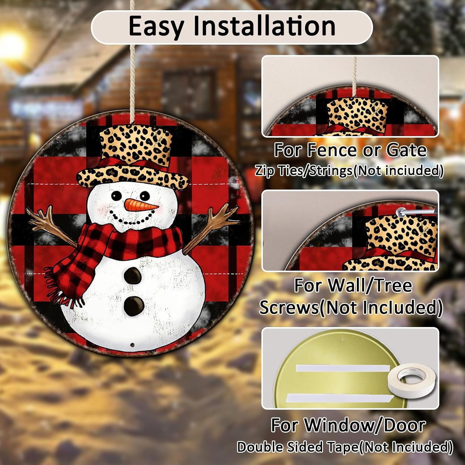 Round Christmas Snowman Tin Sign Vintage Snowman Sign Rustic Wall Decor For Christmas Home Fireplace And Holiday Gatherings Retro Sign 12 * 12 in
