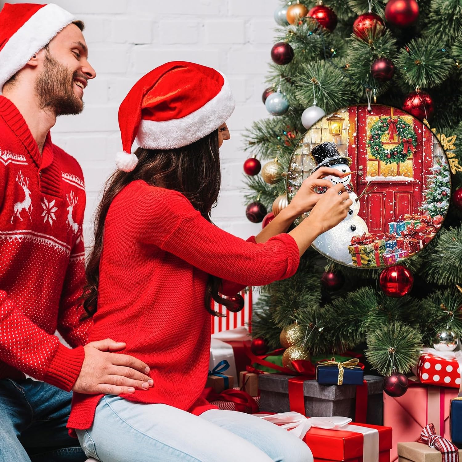 Round Wall Decor Christmas Metal Tin Sign Snowman Sign Rustic Wall Decor Wall Plaque Snowman Wreath Sign for Christmas Round Wreath Wall Decor Vintage Garage Yard Home Decor 12 * 12 in